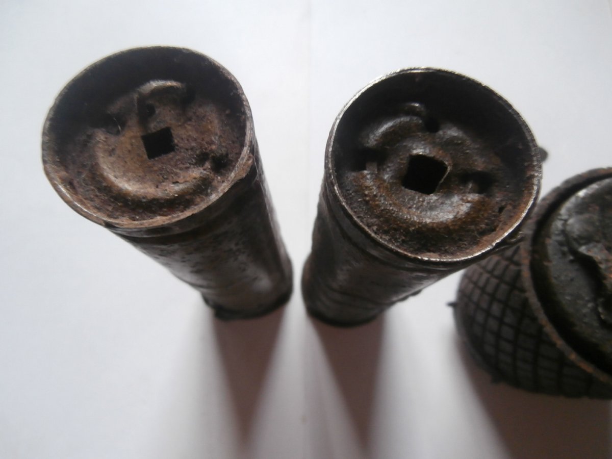 Коп . Все почищено . На ручках есть два читаемых разных клейма изготовителей . Есть немного родного покрытия .