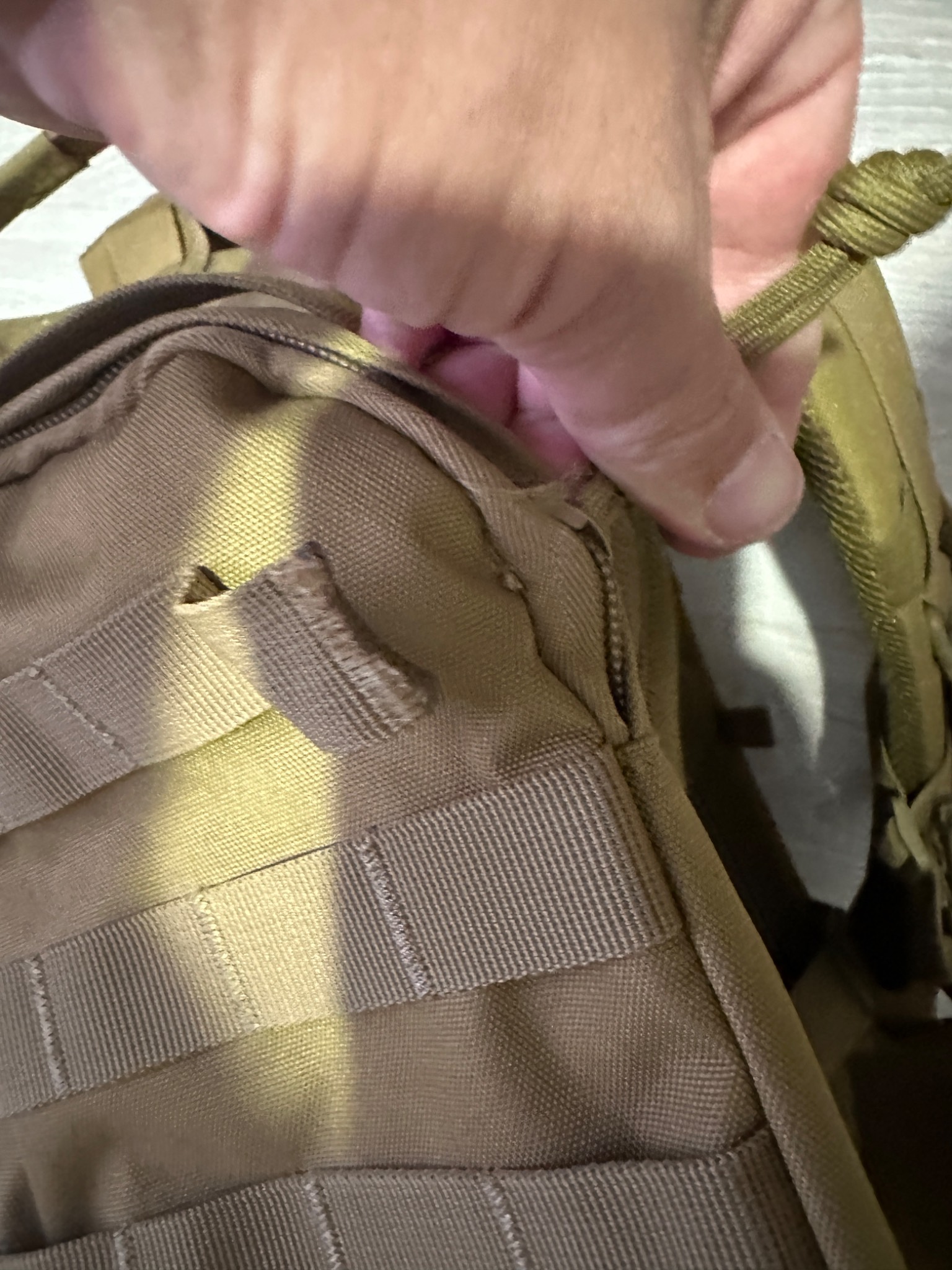 З мінусів. В ночі діставав з багажника і з однієї сторони моль зацепилася за карабін, не подивився потягнув силою і відірвав одне кріплення моль, карман цілий. На фото відобразив
