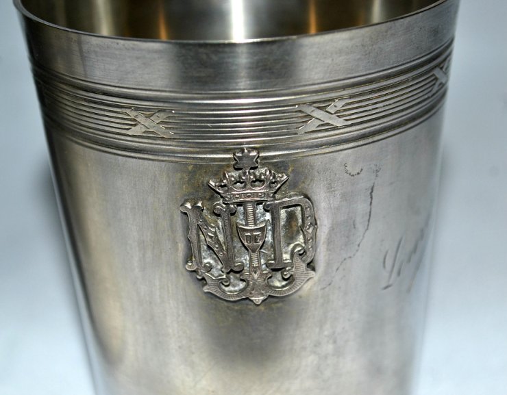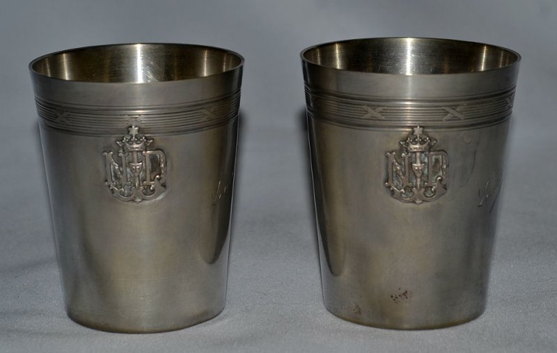 Рюмки с гербом, серебрение.