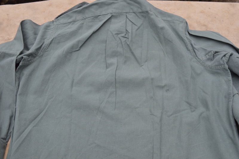 Ширина плеч - 44 см, длина рукава - 61 см, от подмышки до подмышки - 62 см, длина от шеи вниз - 94 см. Присутствуют следы ношения, пуговицы все на месте. На спине присутствует небольшая дырочка (см. фото).