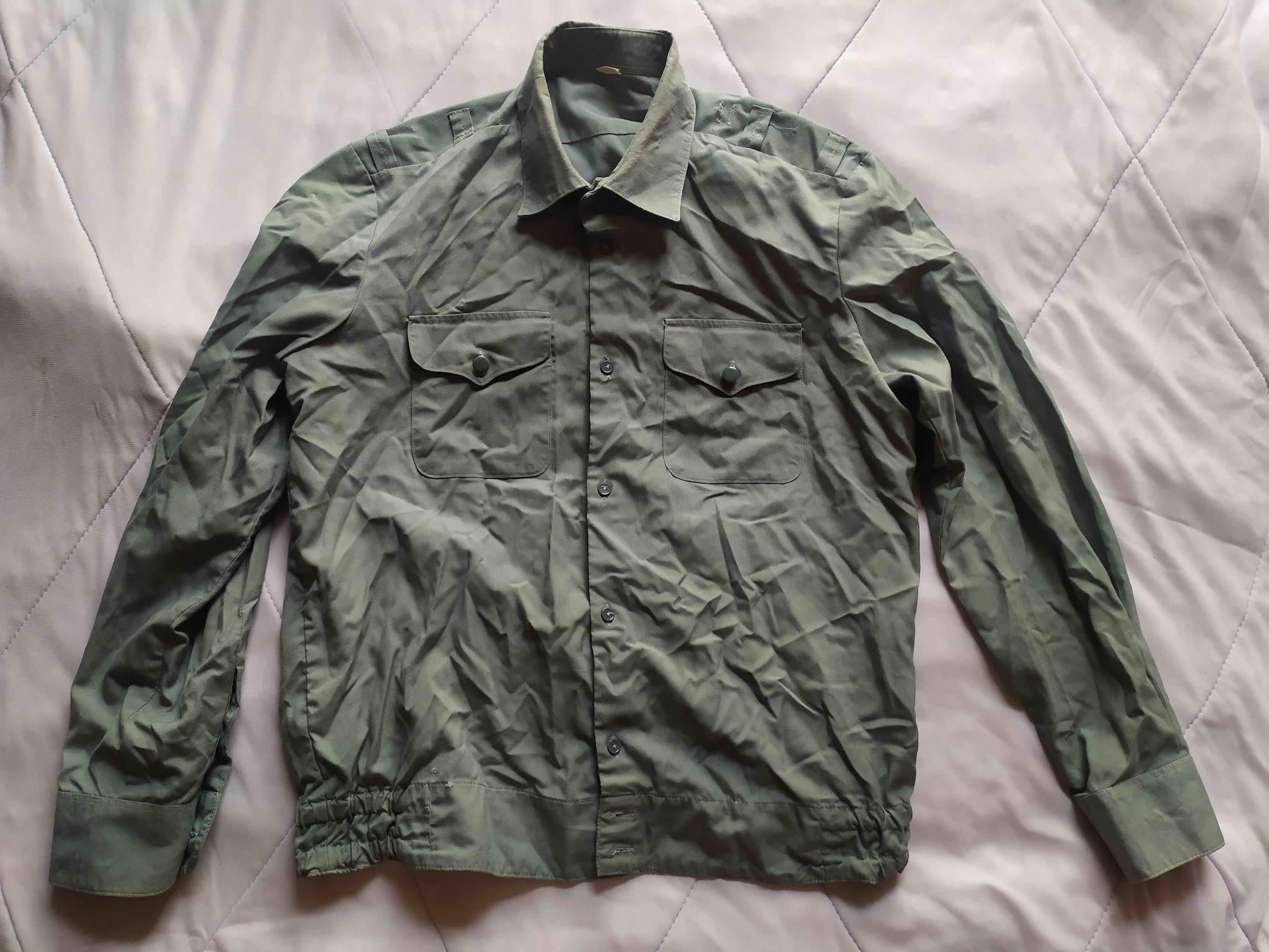 Уставная рубашка ВСУ 2000-х годов светло-полынного цвета. Имеет два внешних кармана. Манжеты на пуговицах.
