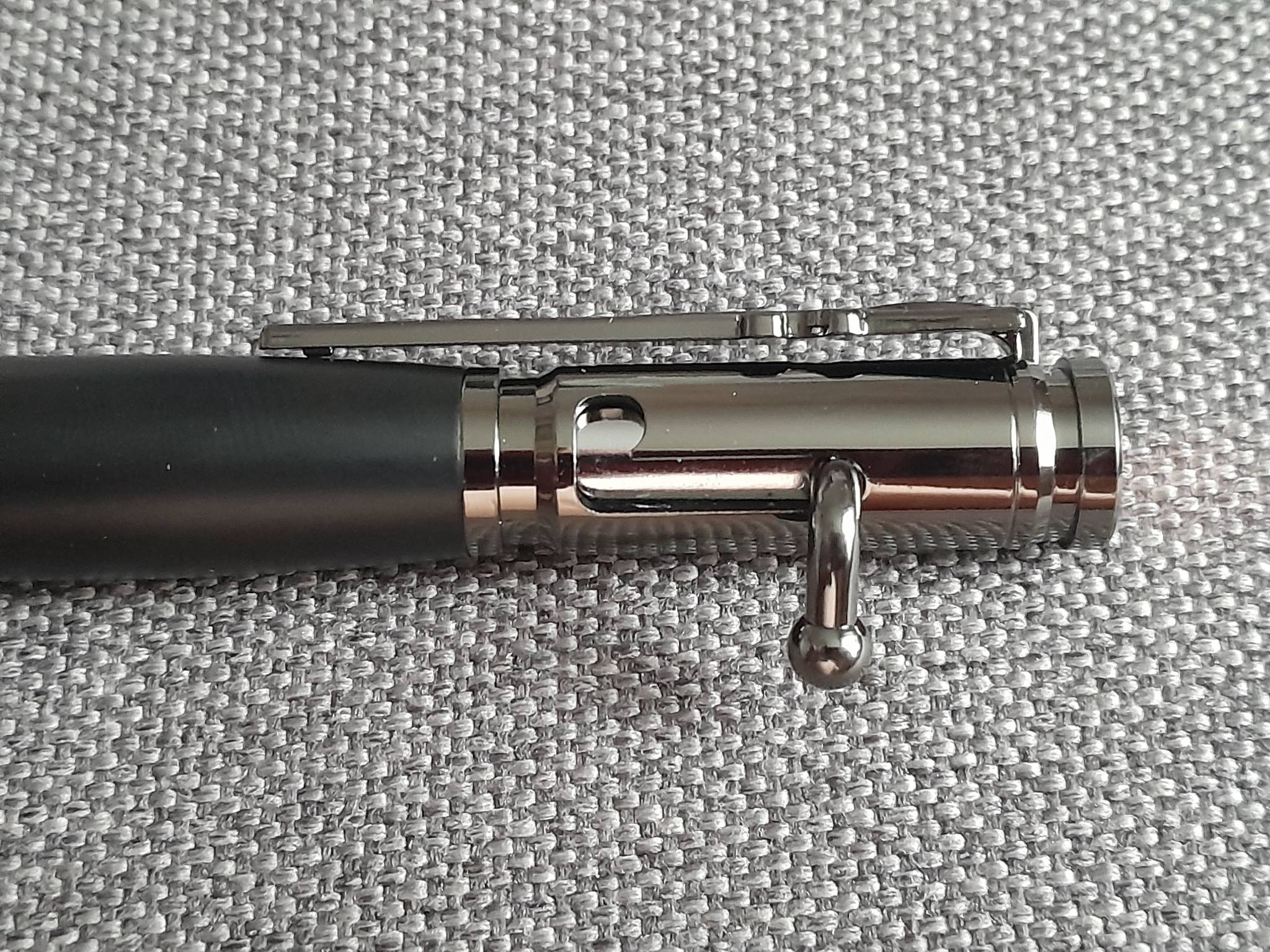 Стильна металева кулькова ручка з оригінальним дизайном у вигляді гільзи. Має зручний механізм натискання у формі затвора гвинтівки — ефектно виглядає й приємно клацає.