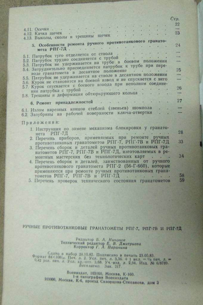 Руководство по ремонту РПГ-7, РПГ-7В, РПГ-7Д
