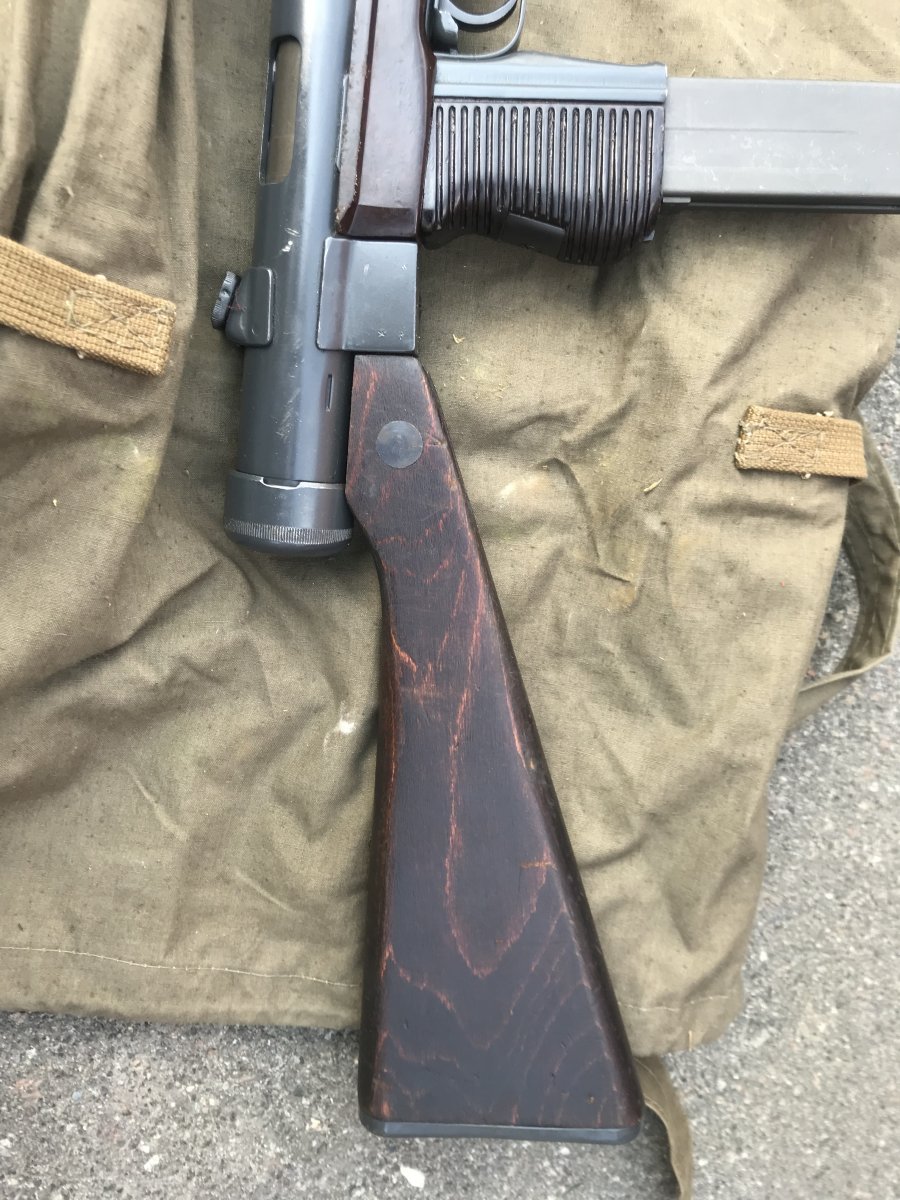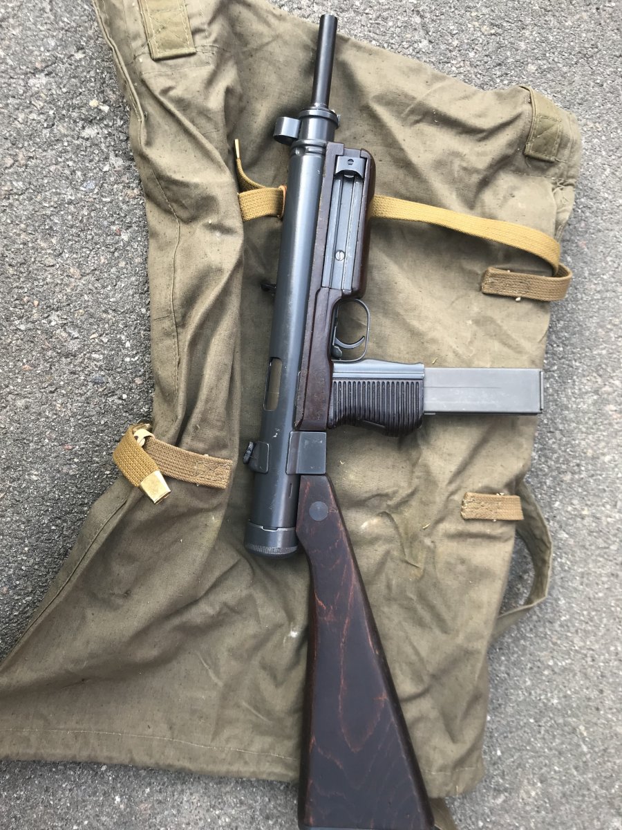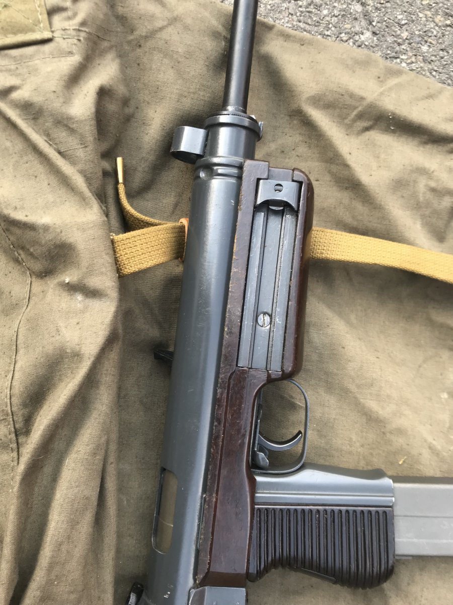 Ствол распилен только внутри ствольной коробки - снизу вдоль, патронник прорезан полностью, в стволе вставлен штифт, подрезано лицо затвора, ствольная коробка деактивирована прямоугольным вырезом металла снизу. Макет не является боевым оружием, ничем не стреляет.
