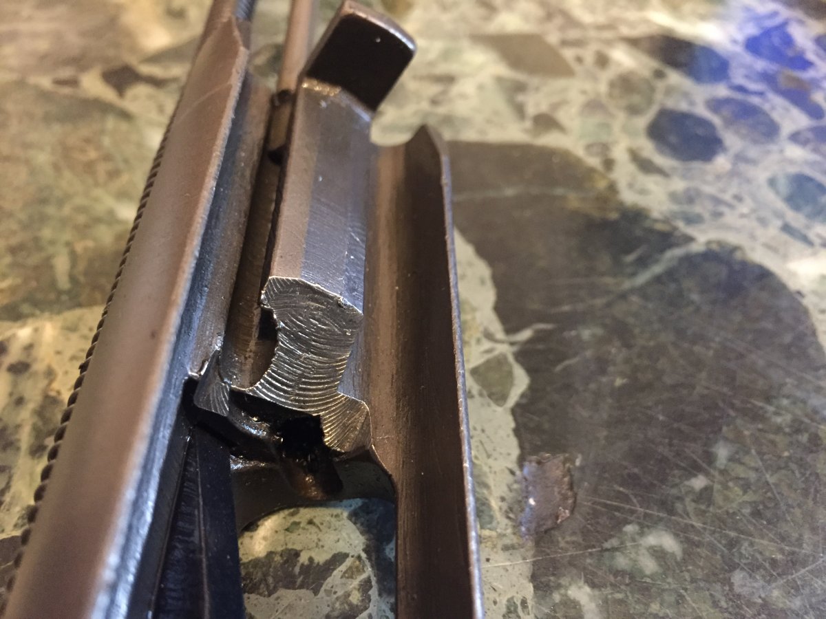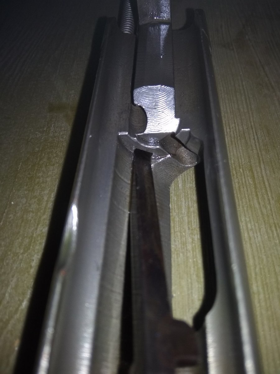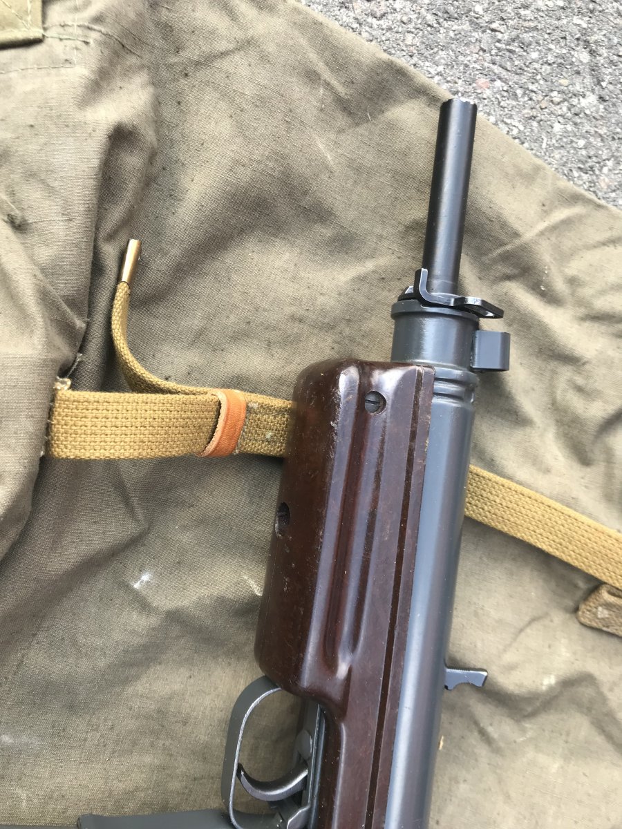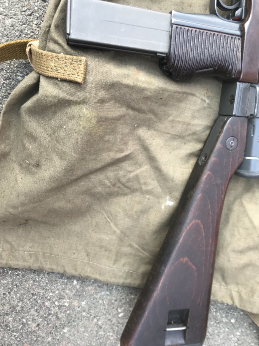 Ствол распилен только внутри ствольной коробки - снизу вдоль, патронник прорезан полностью, в стволе вставлен штифт, подрезано лицо затвора, ствольная коробка деактивирована прямоугольным вырезом металла снизу. Макет не является боевым оружием, ничем не стреляет.