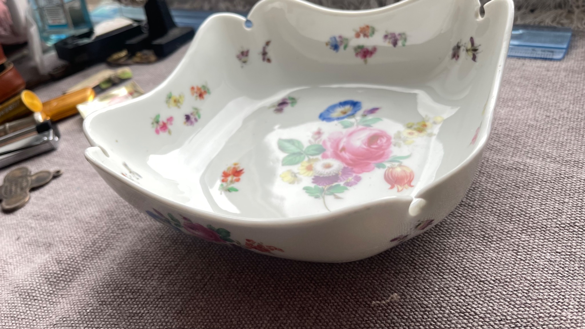 Чудова салатниця мануфактури Meissen, що, в принципі, в рекламі не потребує . Виготовлена з високоякісного фарфору, має елегантний дизайн та зручну форму. Може використовуватися як для повсякденного вживання, так і для урочистих подій. Стан - використовувана, але добре збережена, без сколів та тріщин. Є всім відома тавро - схрещені мечі там номери партії в тісті.