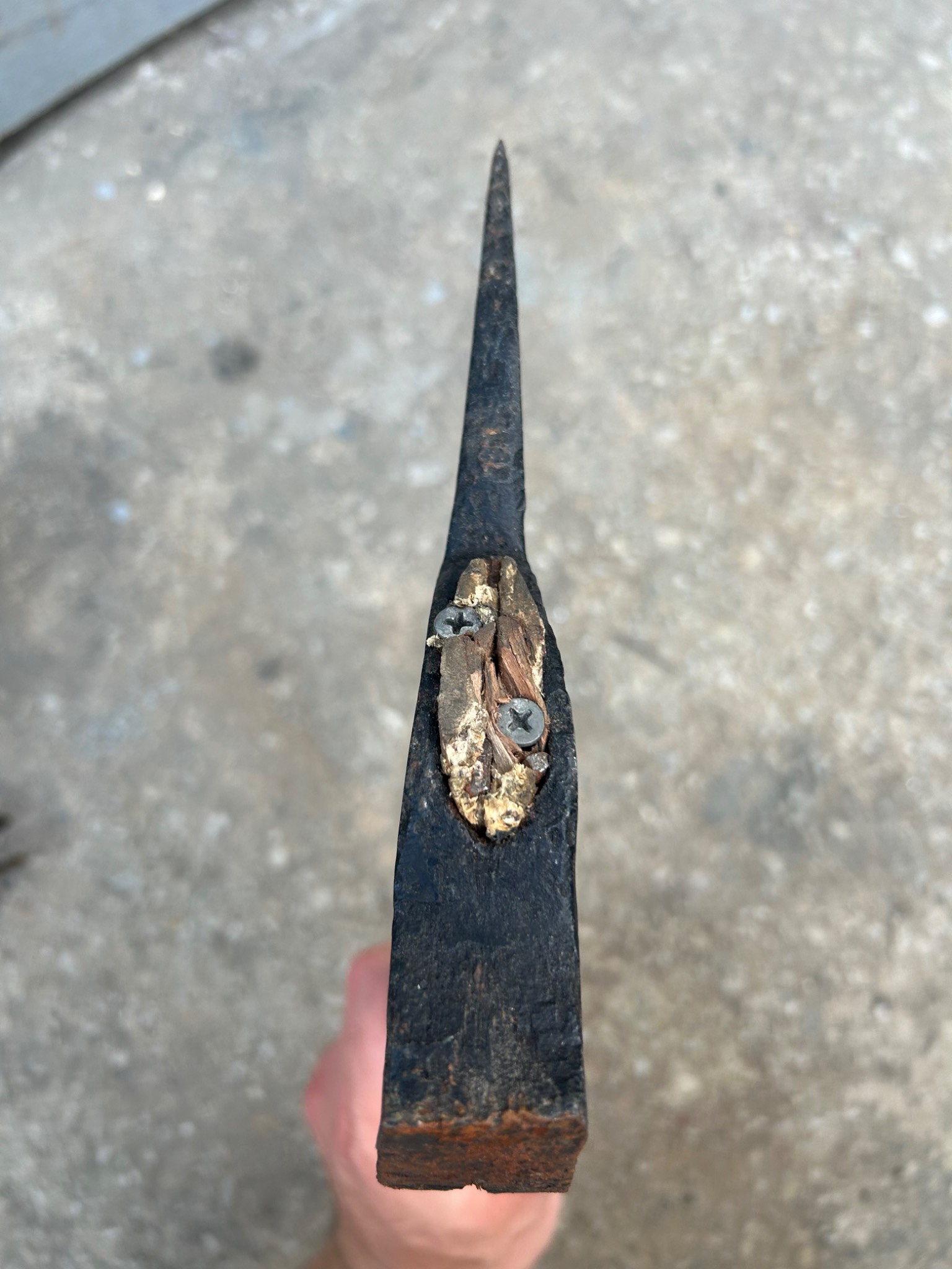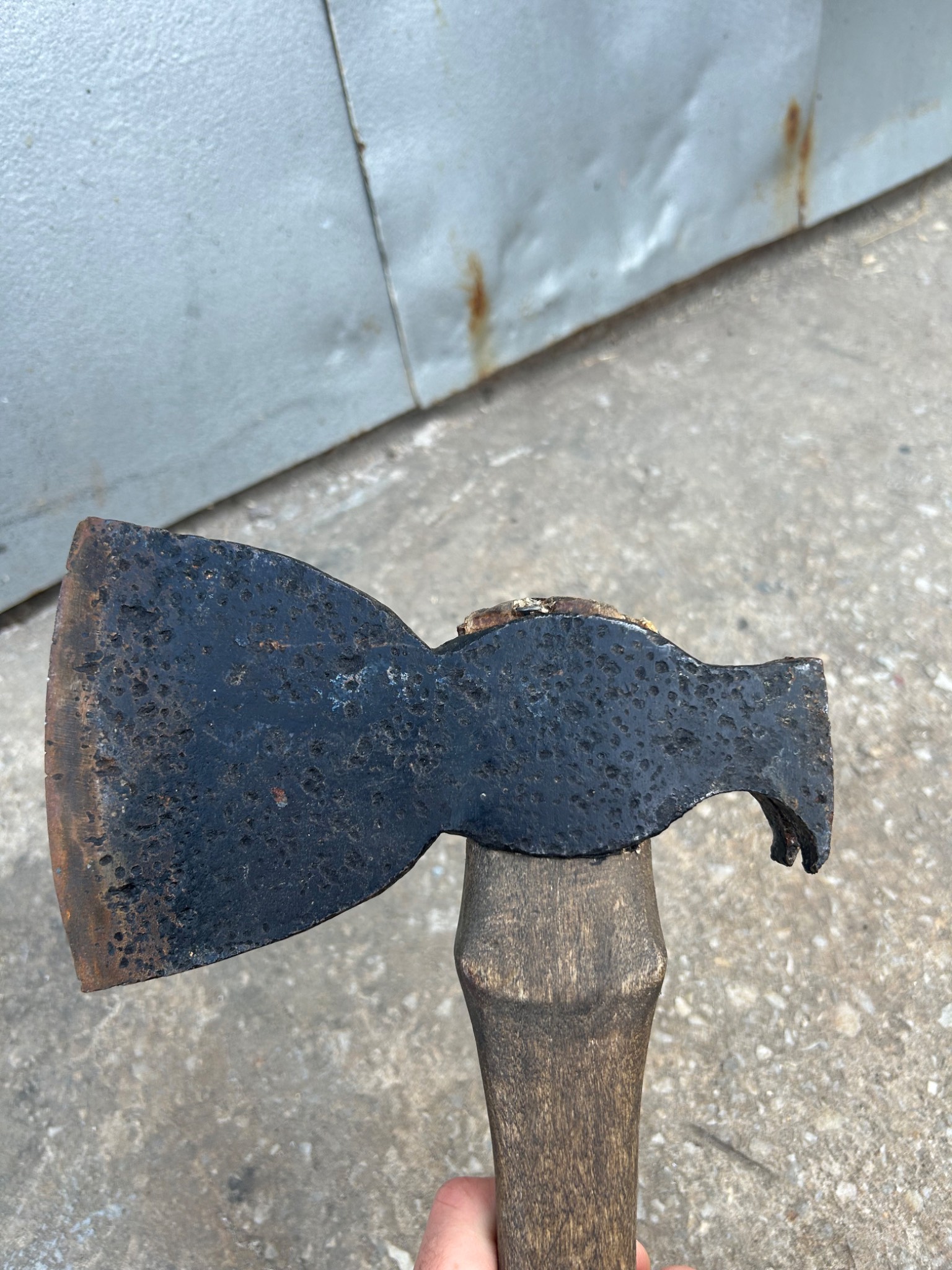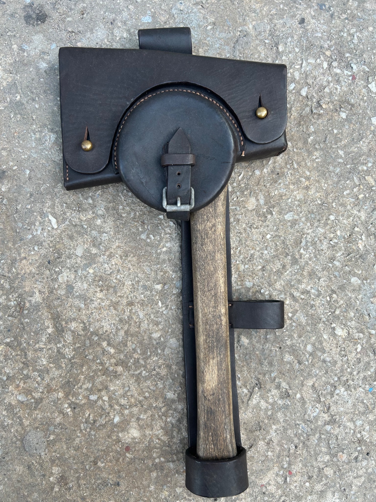 Топор оригинал, клейм не видно, ручку нужно поменять, временно закрутил саморезы, чехол - добротная реплика, состояние нового.
