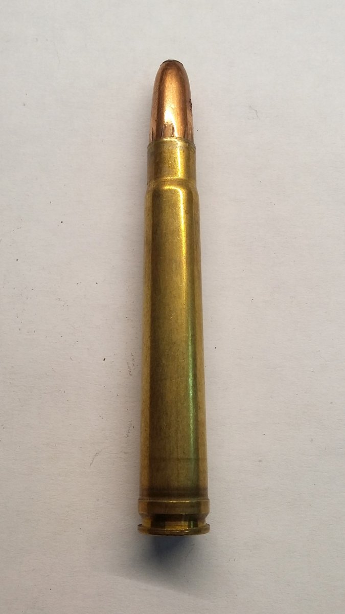 Сборный ммг патрона .375 Н&H. Гильза латунь, стреляная, пуля прошла канал ствола. Внутри пусто, не сверленый.
