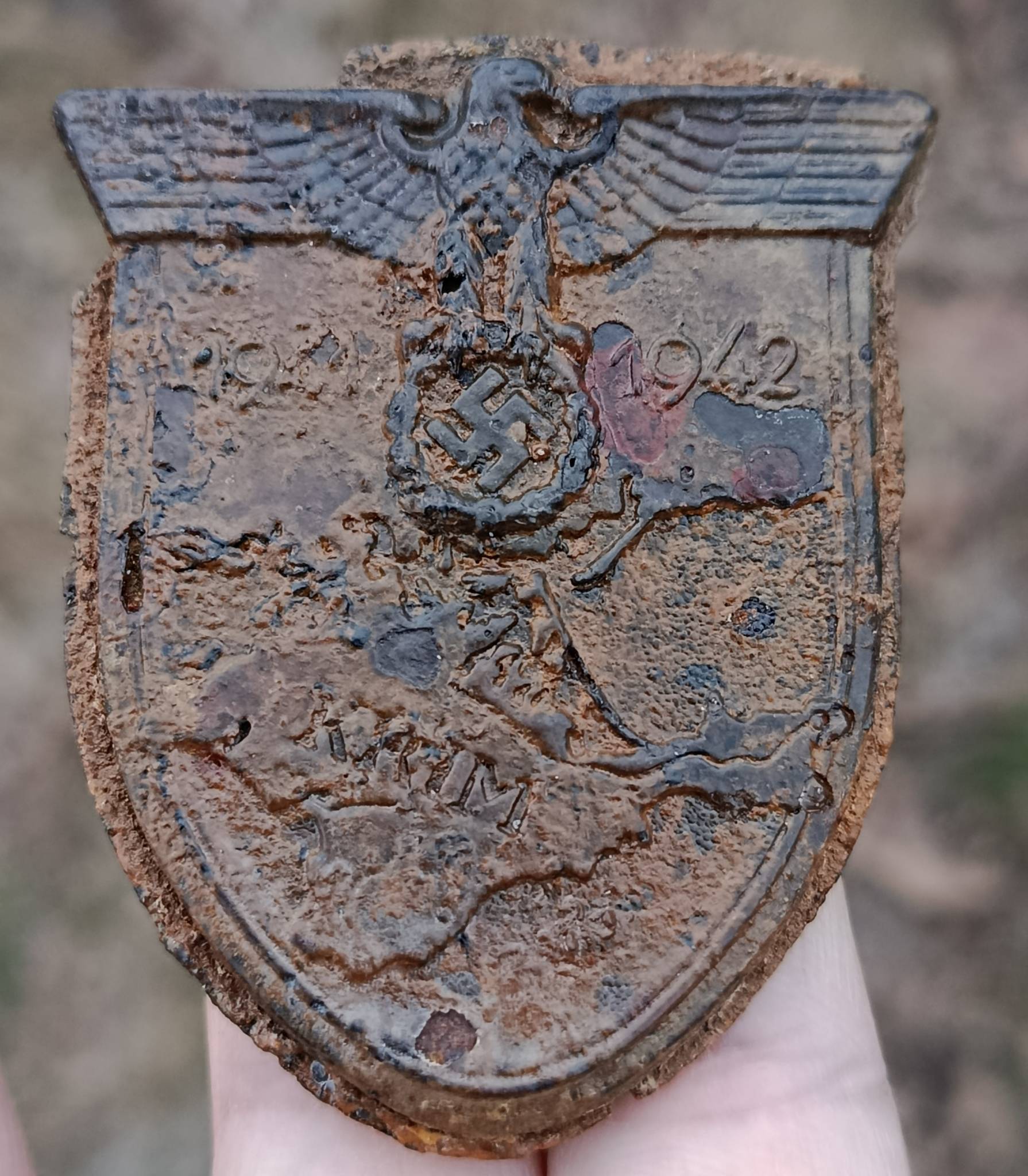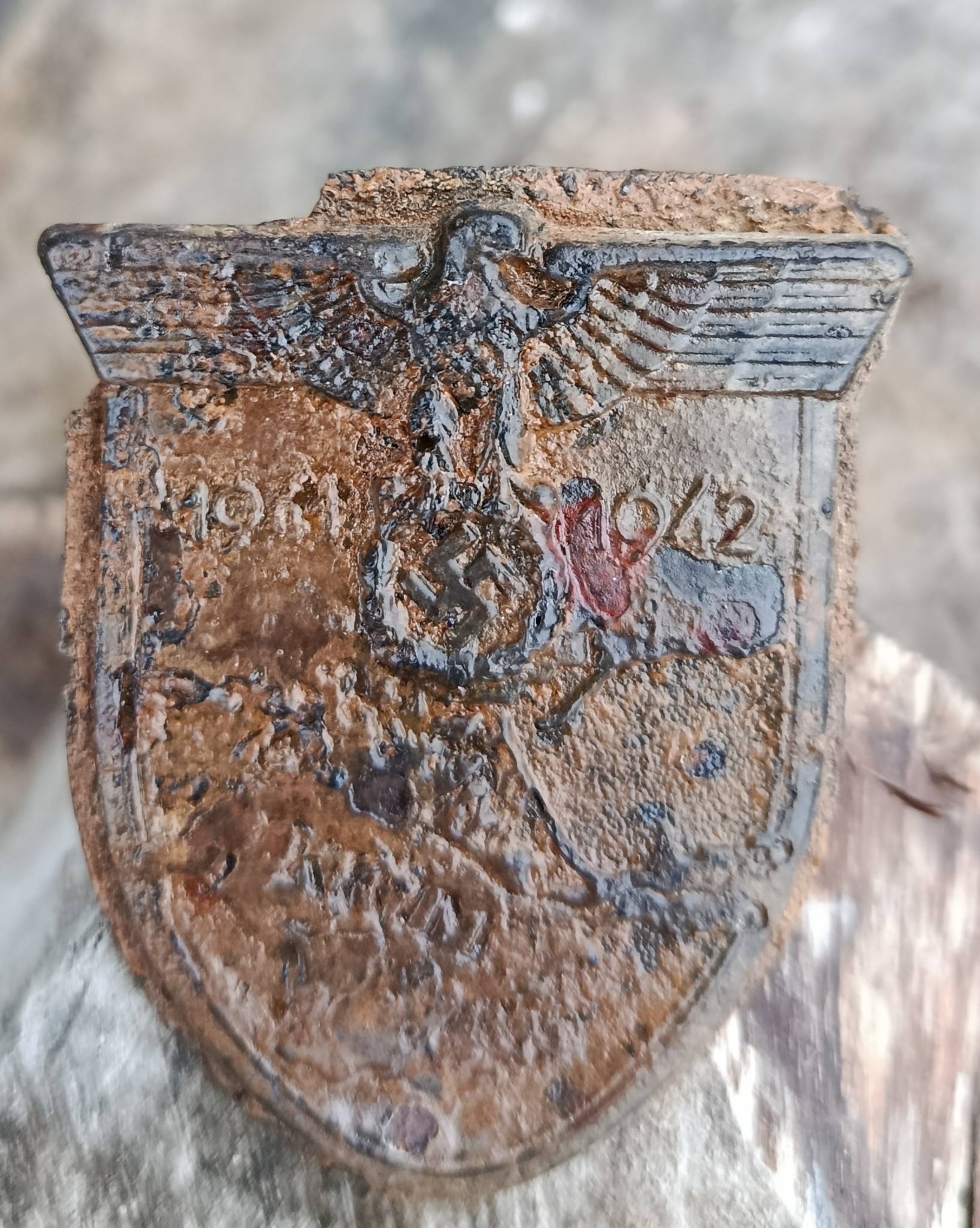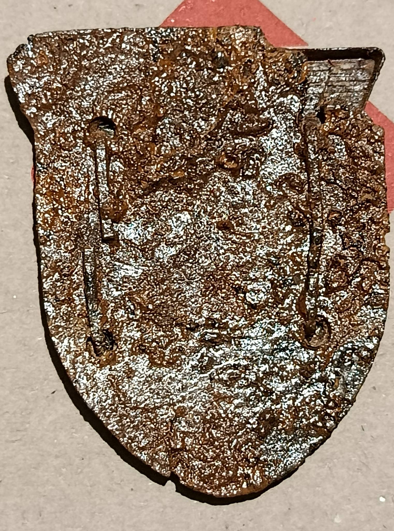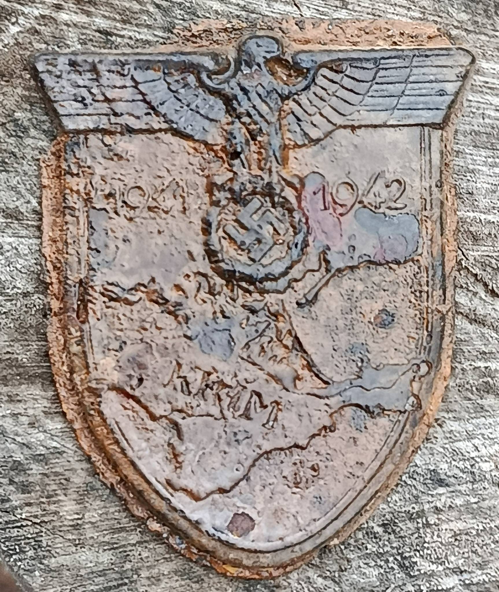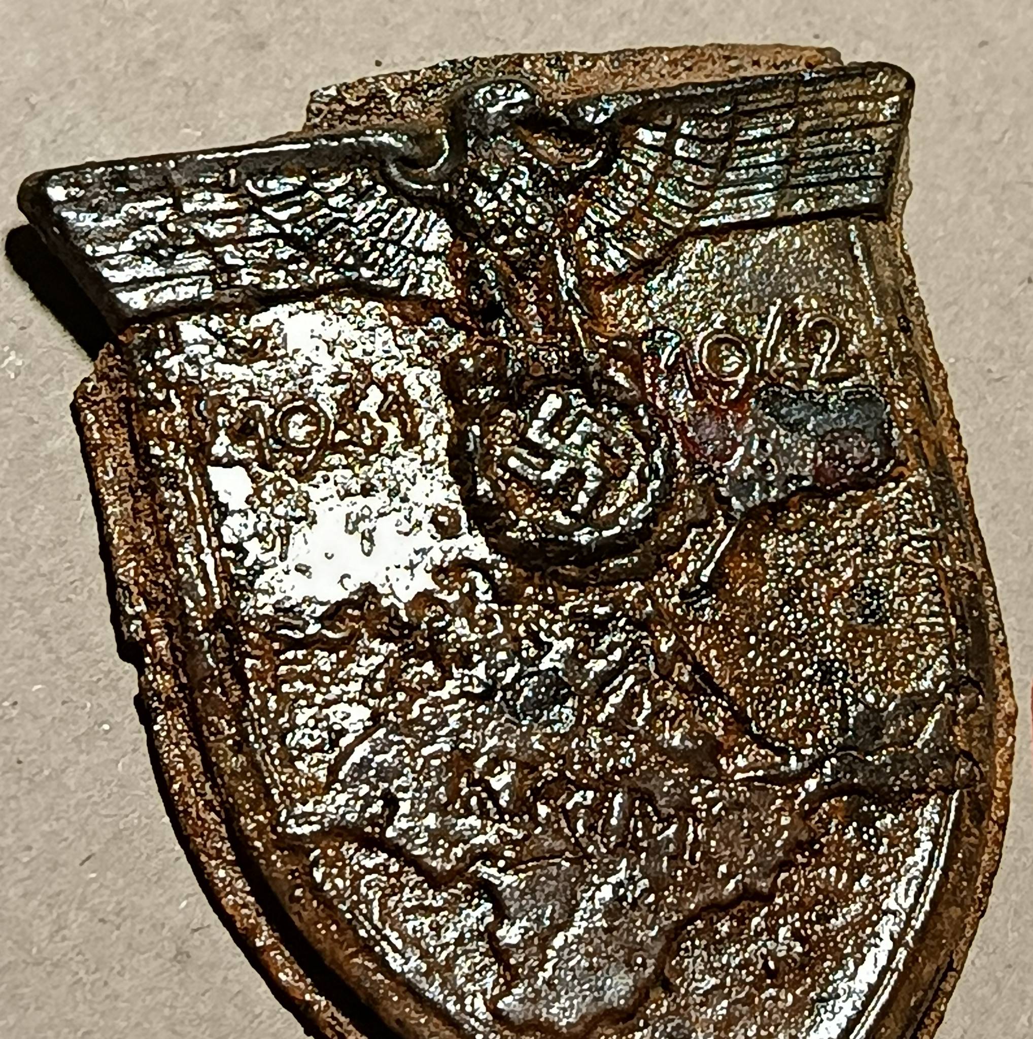 Хороший щит. Есть повреждение пластины на фото, на орле внизу есть небольшое повреждение.