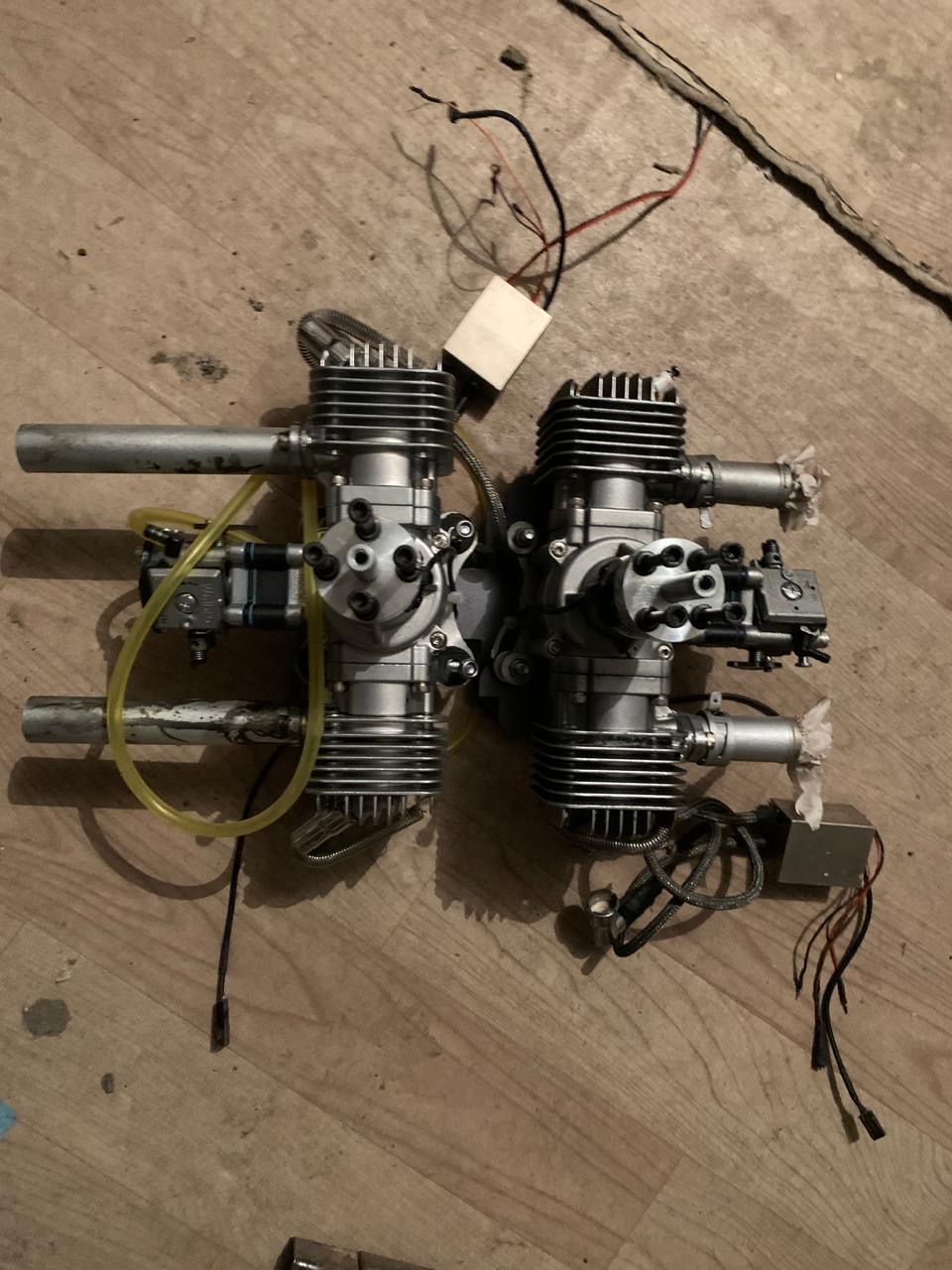 двигун SE-70T. 2-одним лотом. Вали прокручуються, компресія присутня, запалення в комплектні., ребра циліндрів не пошкоджені. Взагальному мотори в дуже гарному стані!