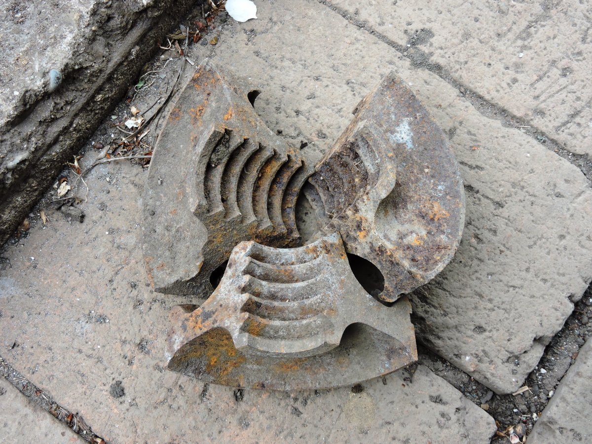 Сегменты для подкалиберного снаряда 125 мм. Держат снаряд в гильзе и отлетают при вылете снаряда из дула. Копаные, краска уже ушла, поясков нет, 1 с утратами в двух местах