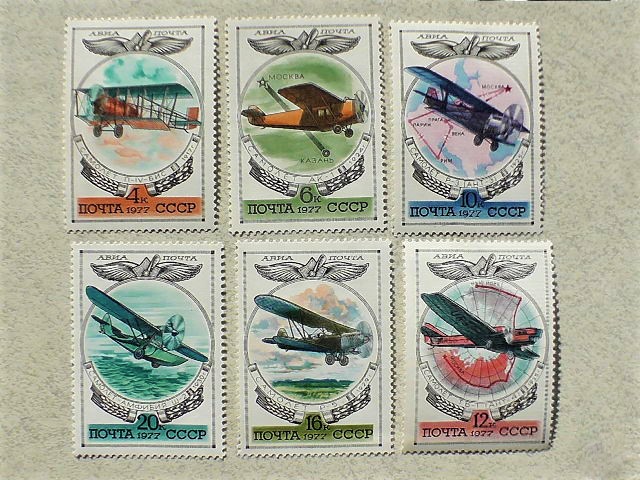 Серія поштових марок СРСР " Авіапочта. Історія вітчизняного авіабудування " 1977 рік **