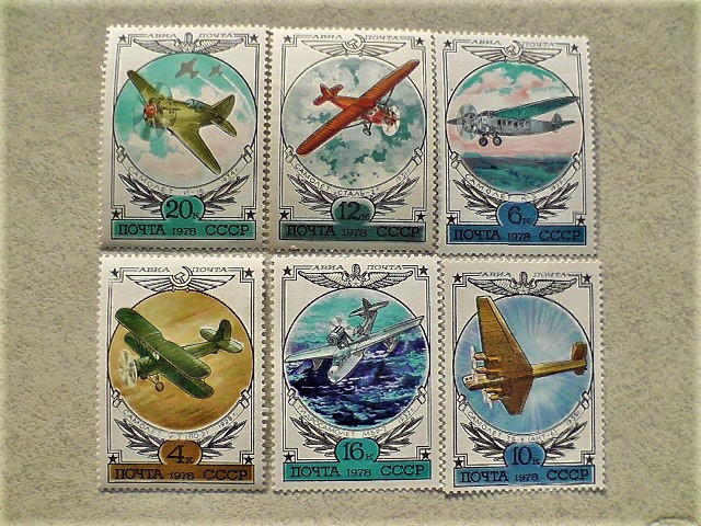 Серія поштових марок СРСР " Авіапочта. Історія вітчизняного авіабудування " 1978 рік **