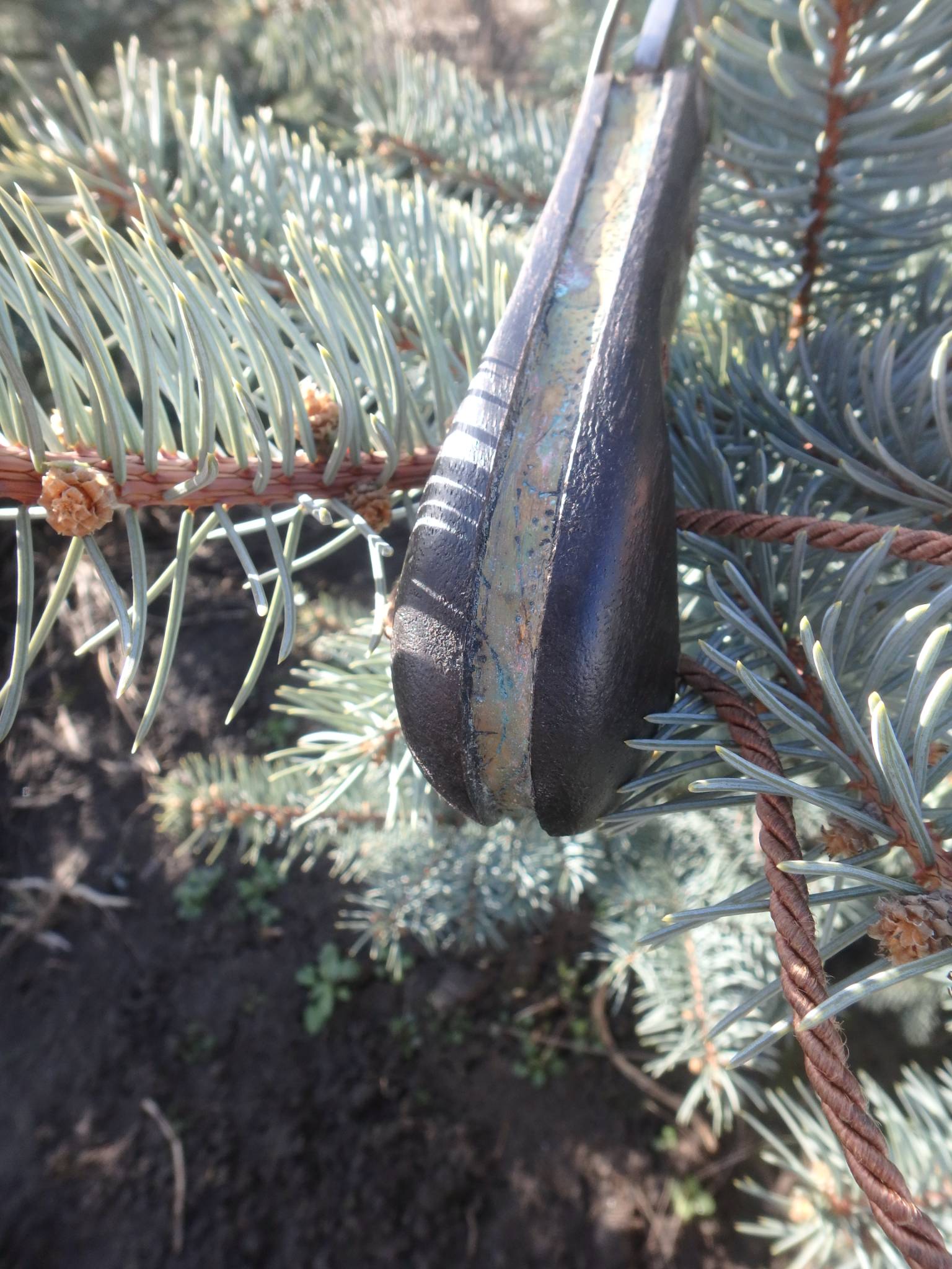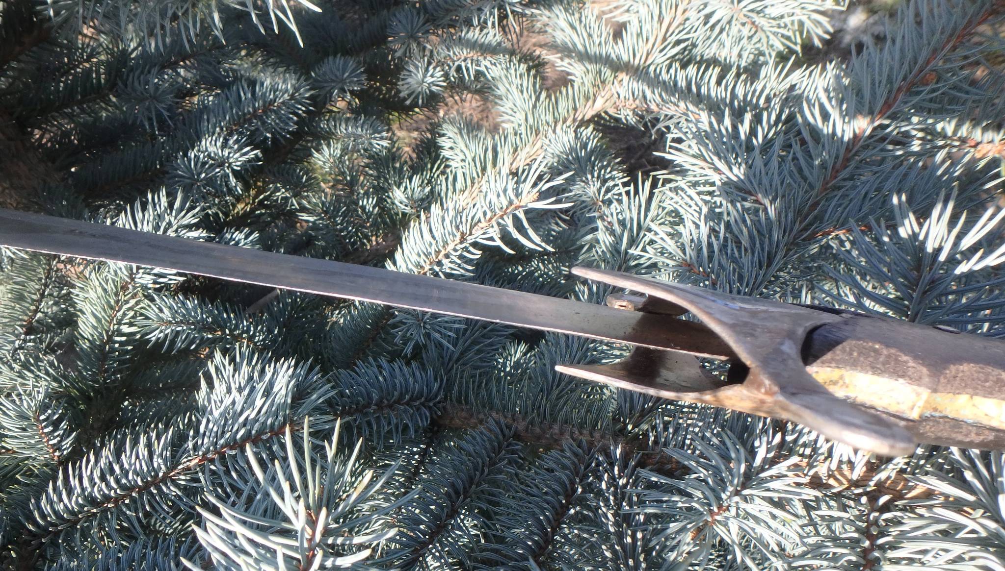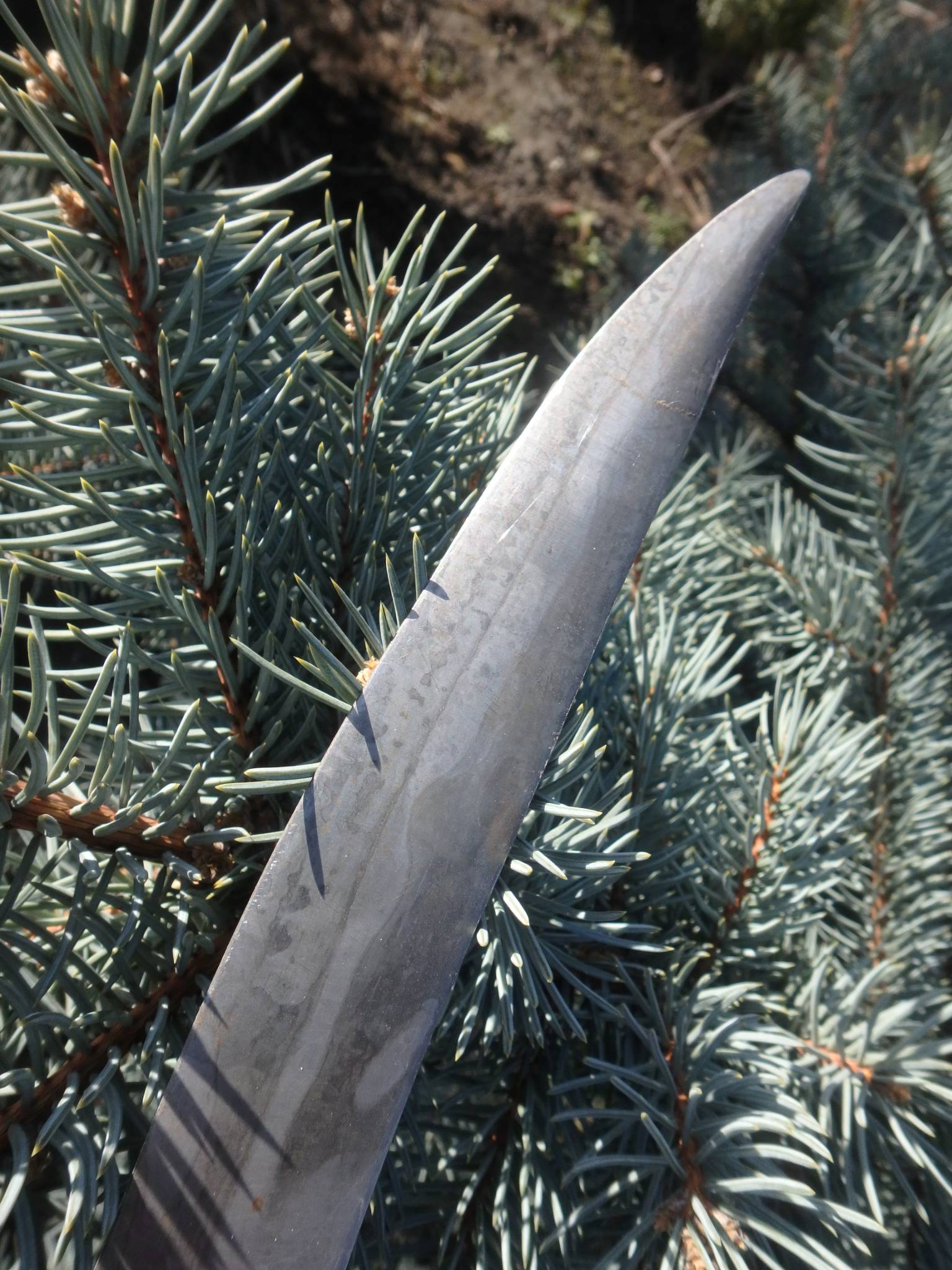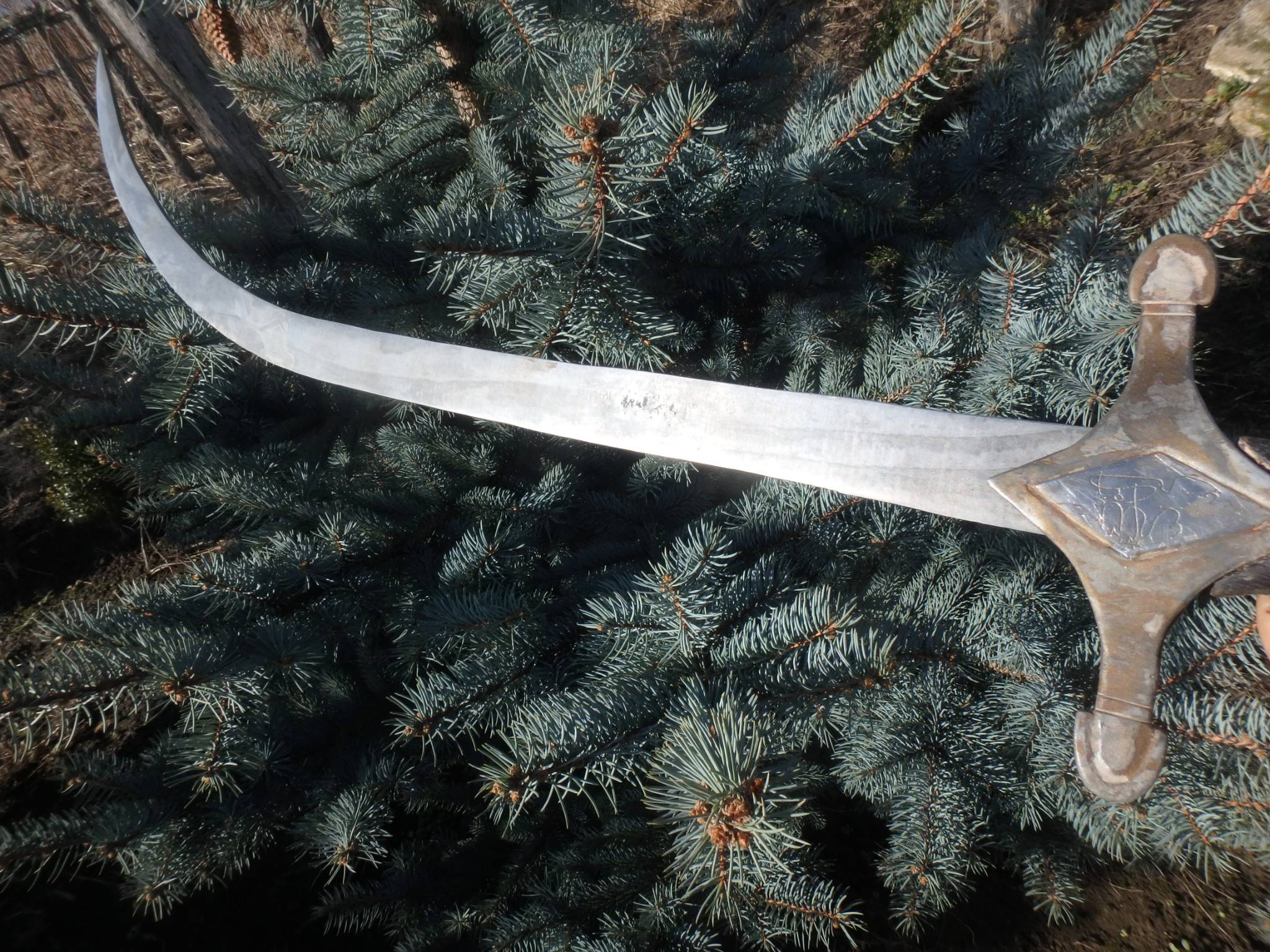 Материал: Видны следы коррозии, но поверхность довольно гладкая. Если на свету под углом видны «древесные» узоры или мелкие волны — это булат или дамаск. Если сталь однородная — это добротная промышленная сталь того времени.