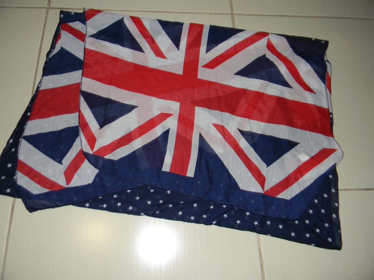 шарф - прапор Aвстралії. розміром 50 см.х160см.б.в.тканина тонка,напів прозора 40% котон,60% синтетика.вигляд по фото.перешлю поштою.оплата пересилки за рахунок покупця