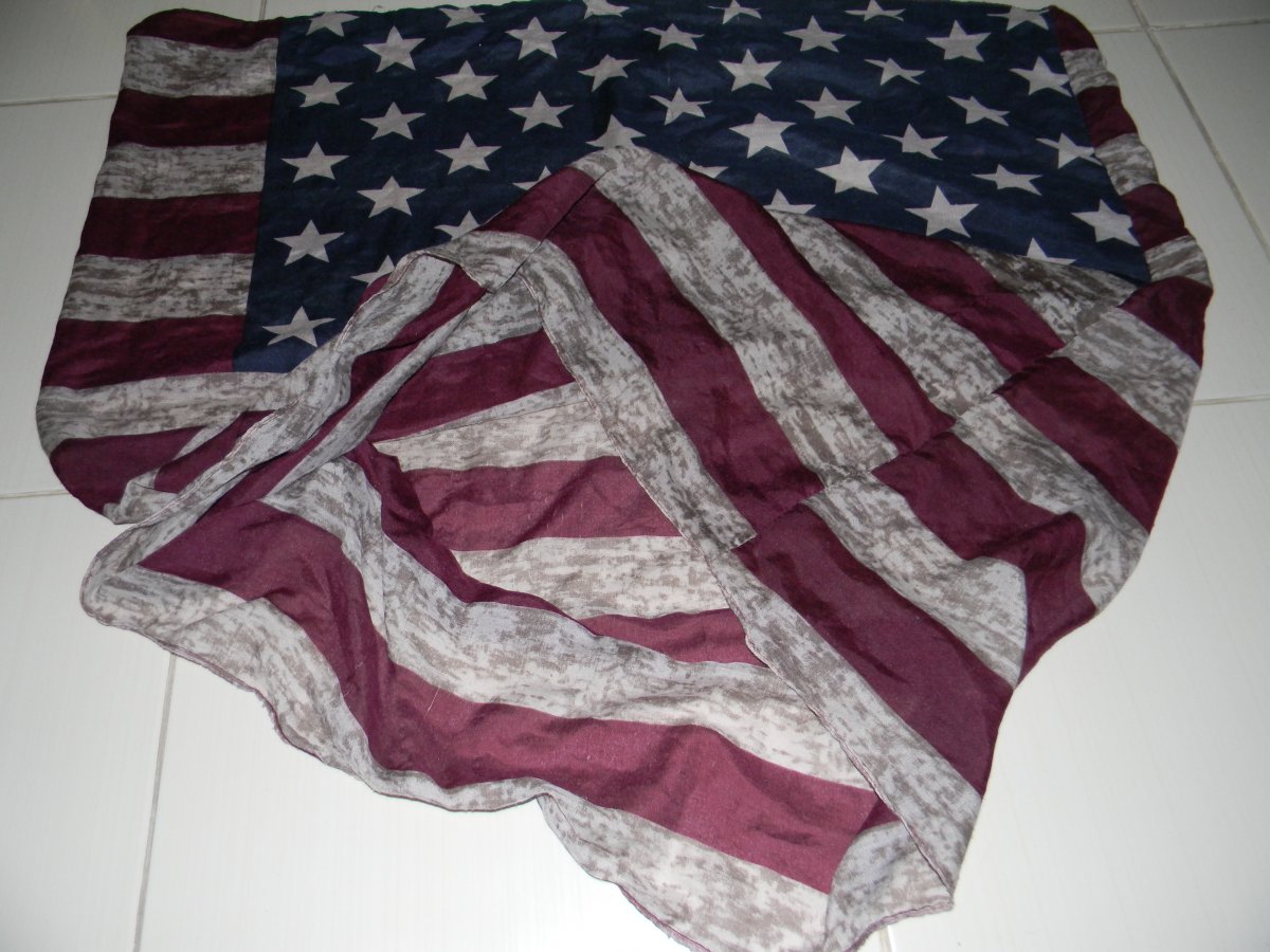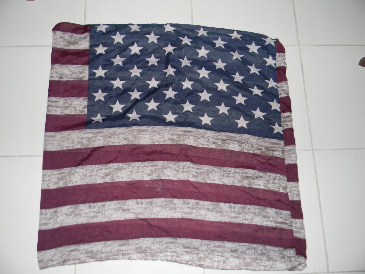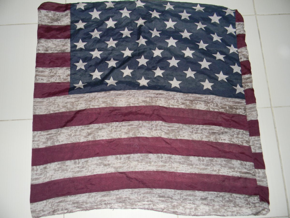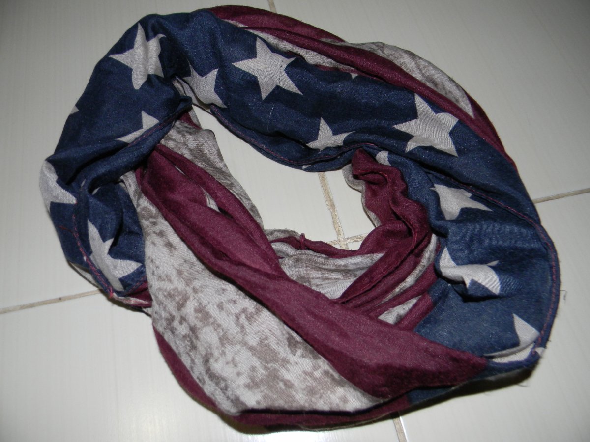 шарф в стилі прапора USA . розміром:півширина 79 см.х висота 80см.б.в.тканина тонка,напів прозора .вигляд по фото.перешлю поштою.оплата пересилки за рахунок покупця