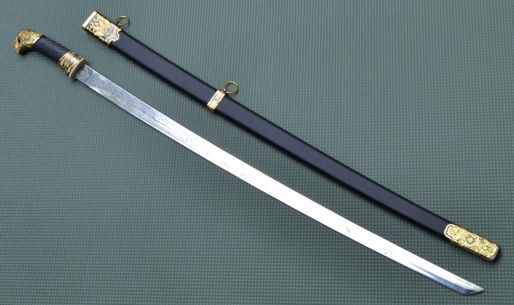 Длина в ножнах 96 см,клина 78 см.