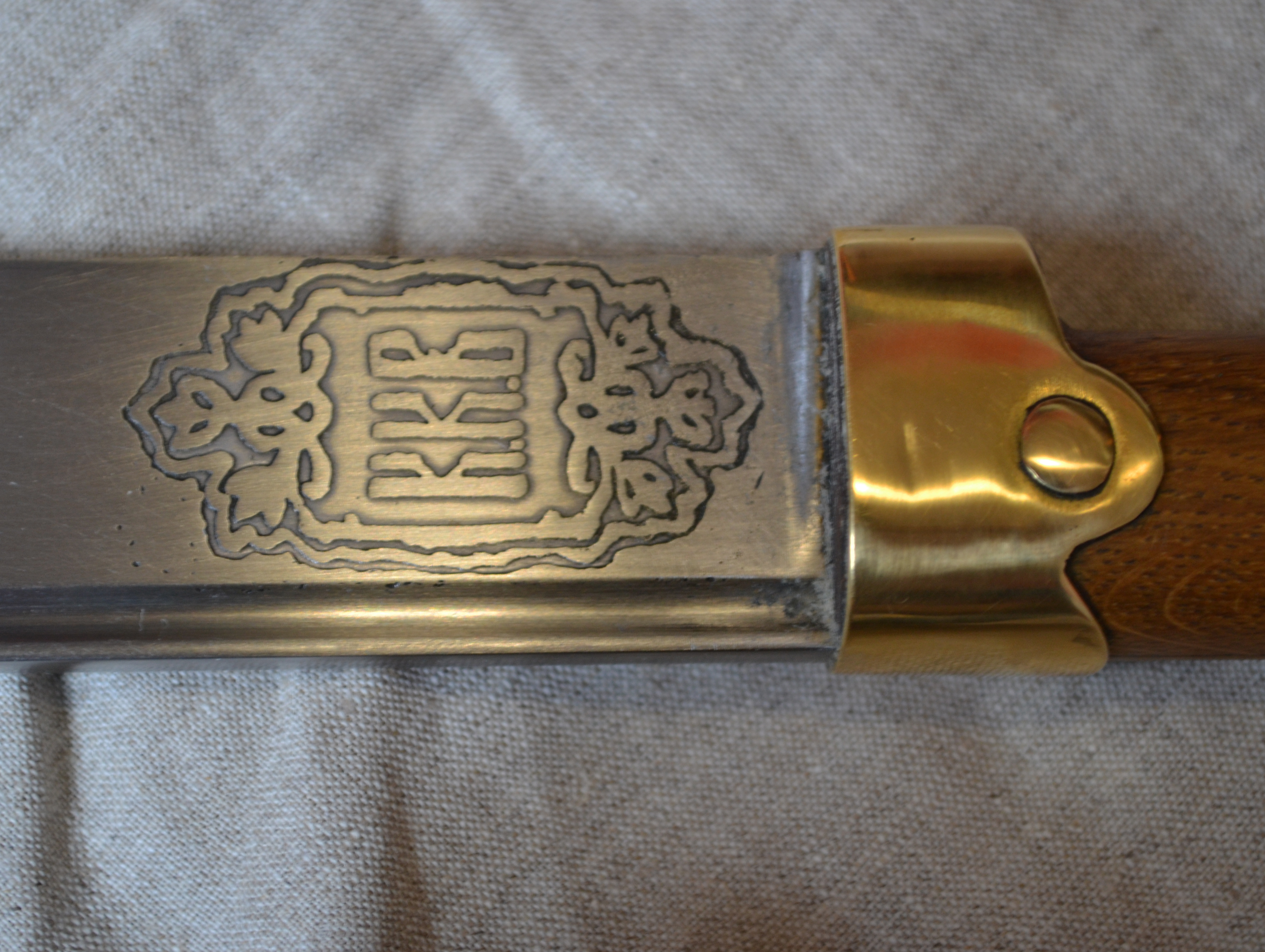 Руків’я шашки - дуб (посаджено на клей), заклепки латунь, обоймиця латунь (паяна сріблом)