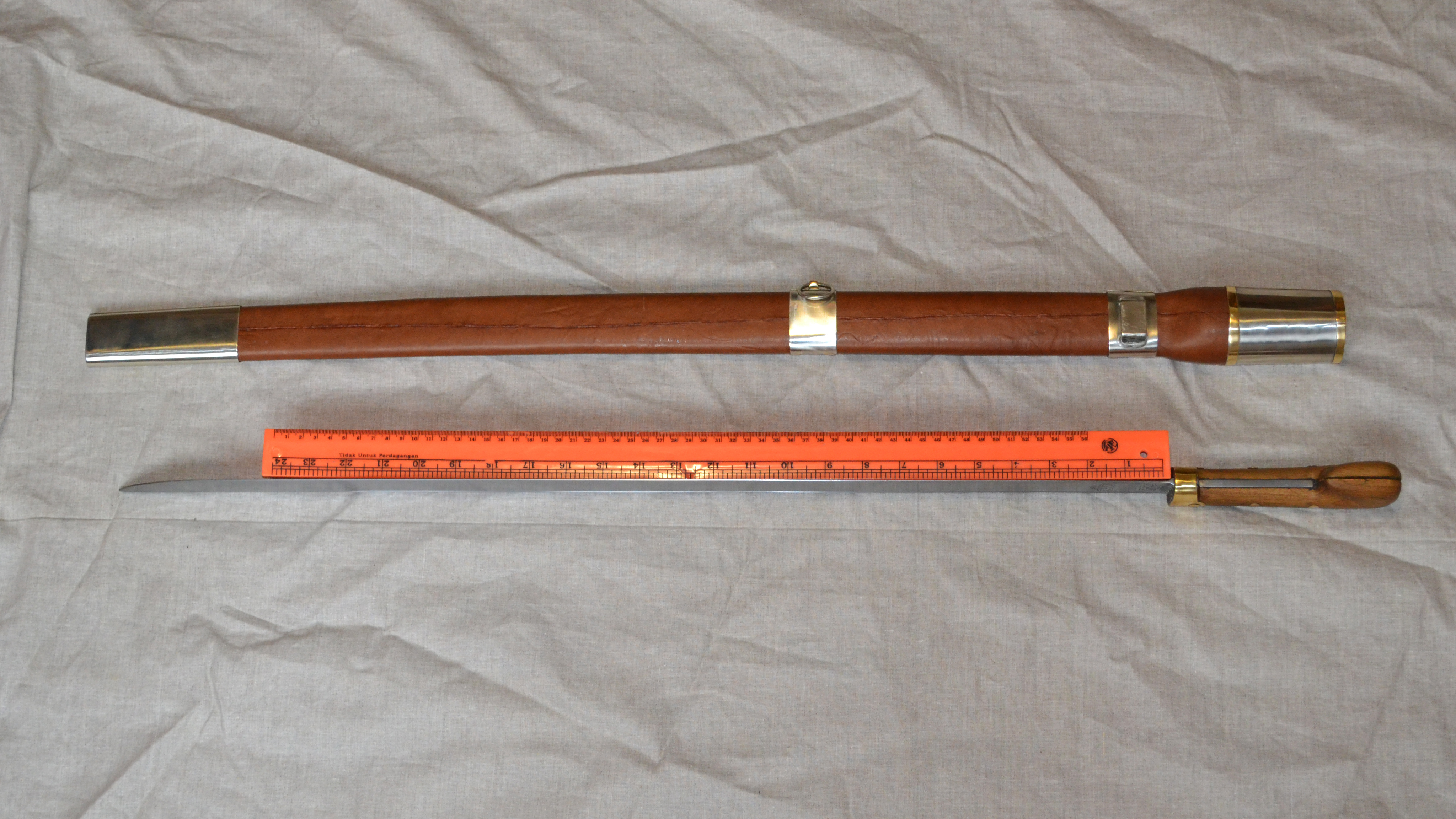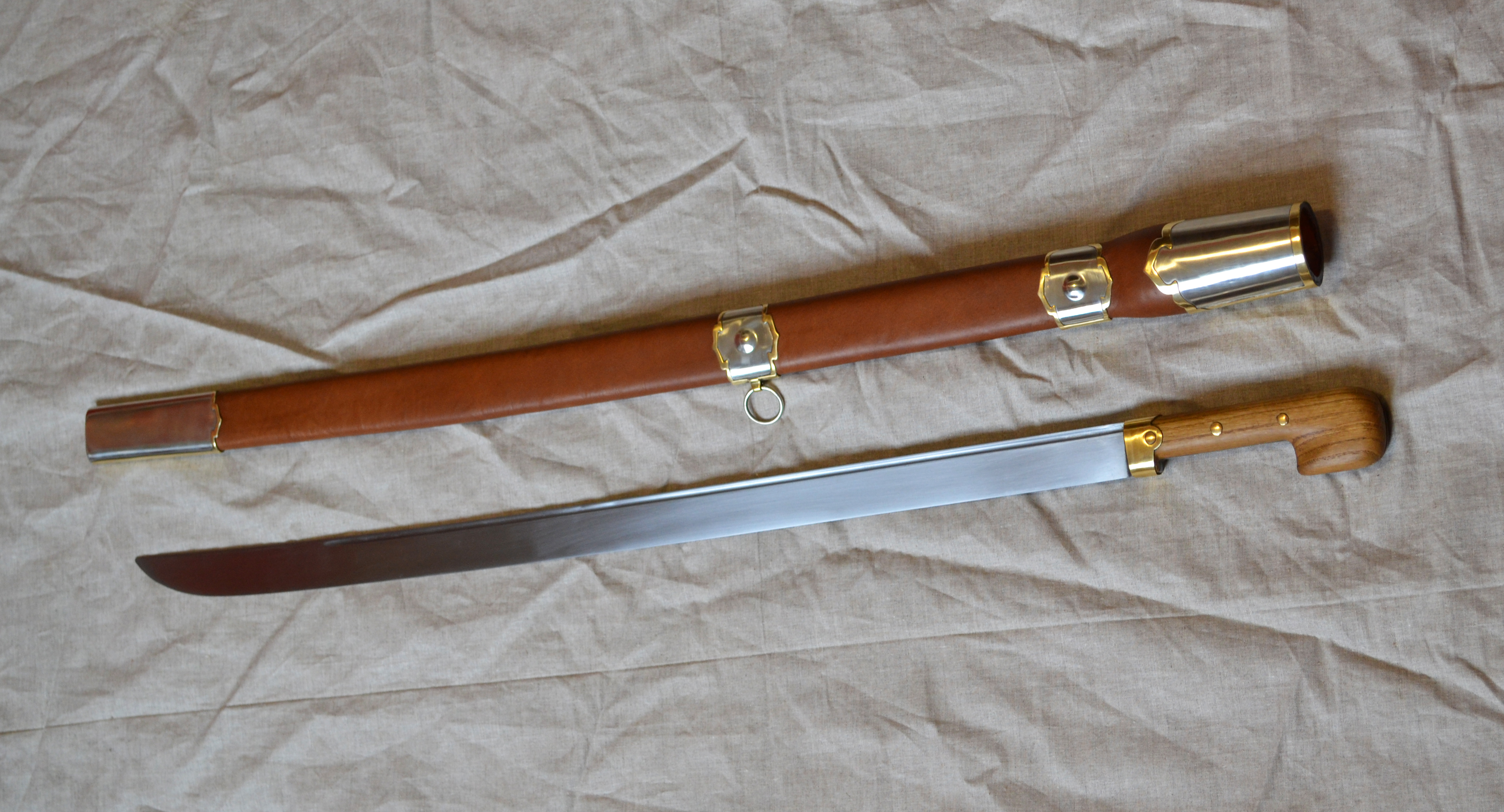 Ножни – липові дошки,натуральна шкіра , фурнітура - мельхіор, латунь (спаяно оловом, сріблом)