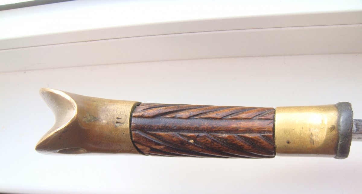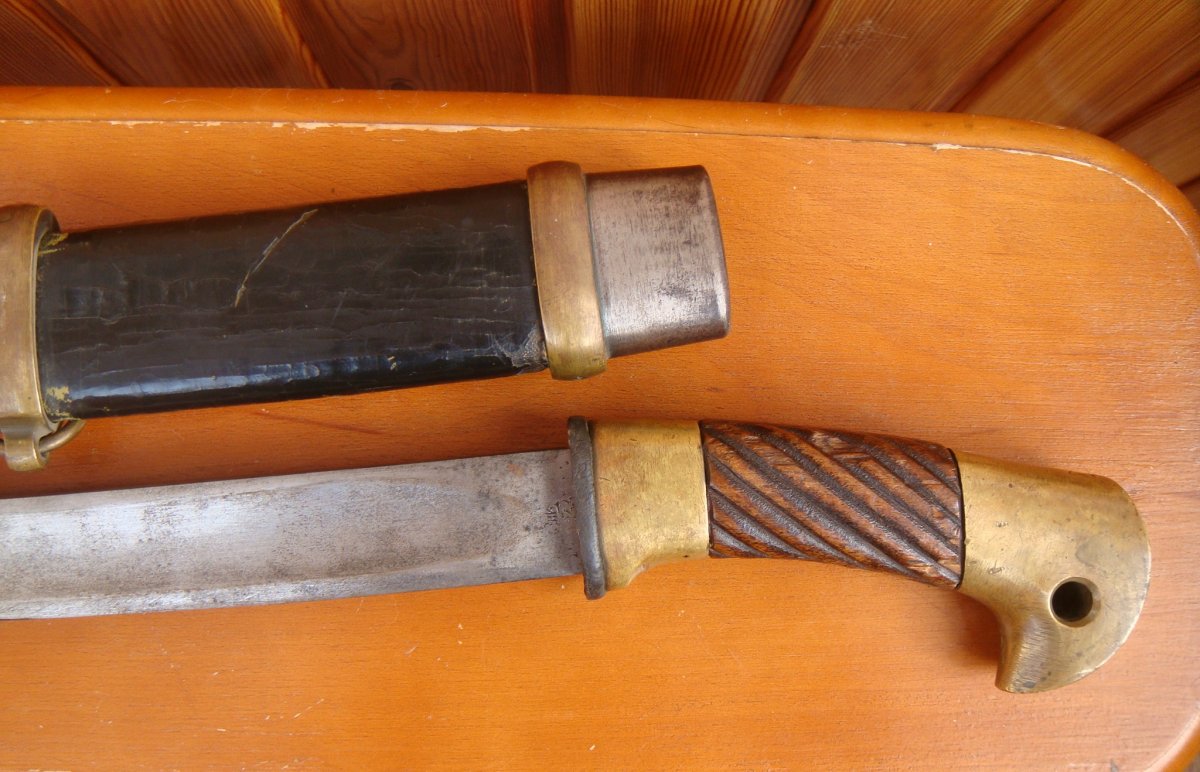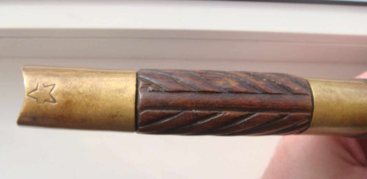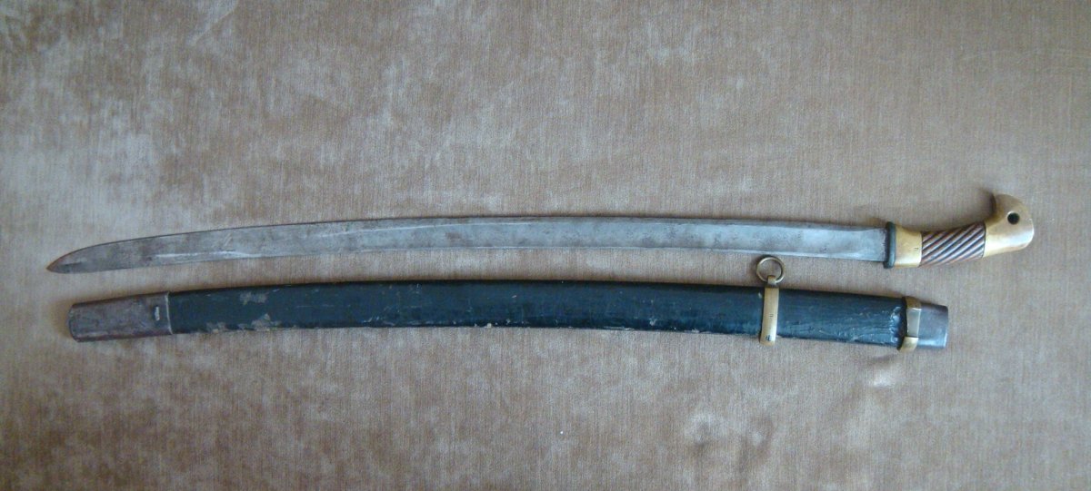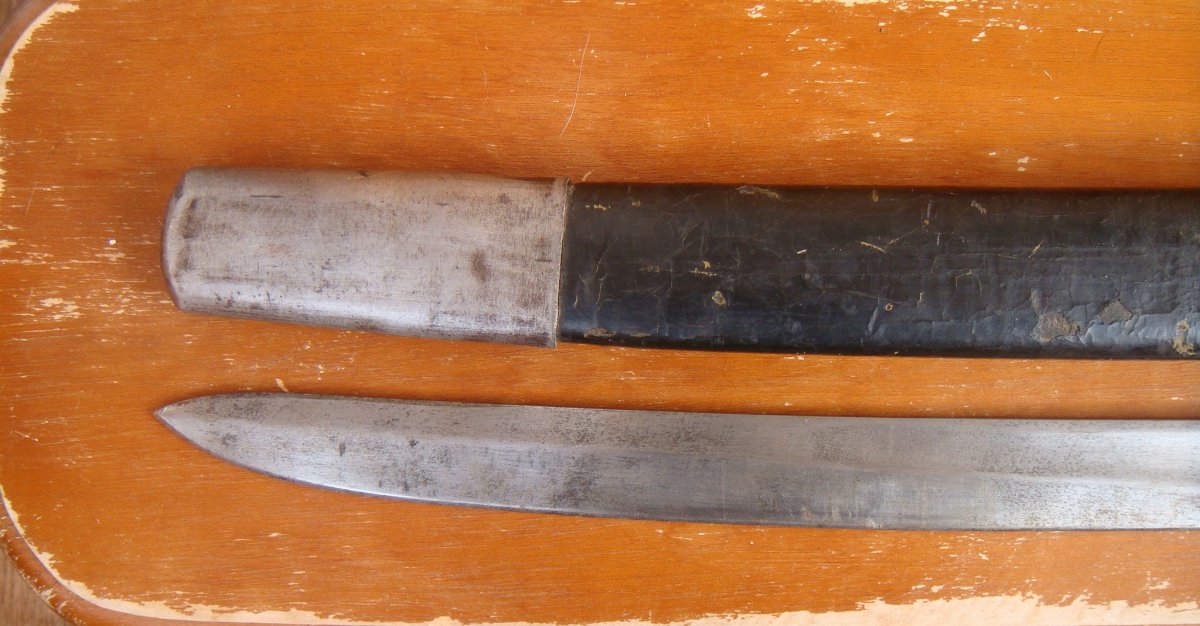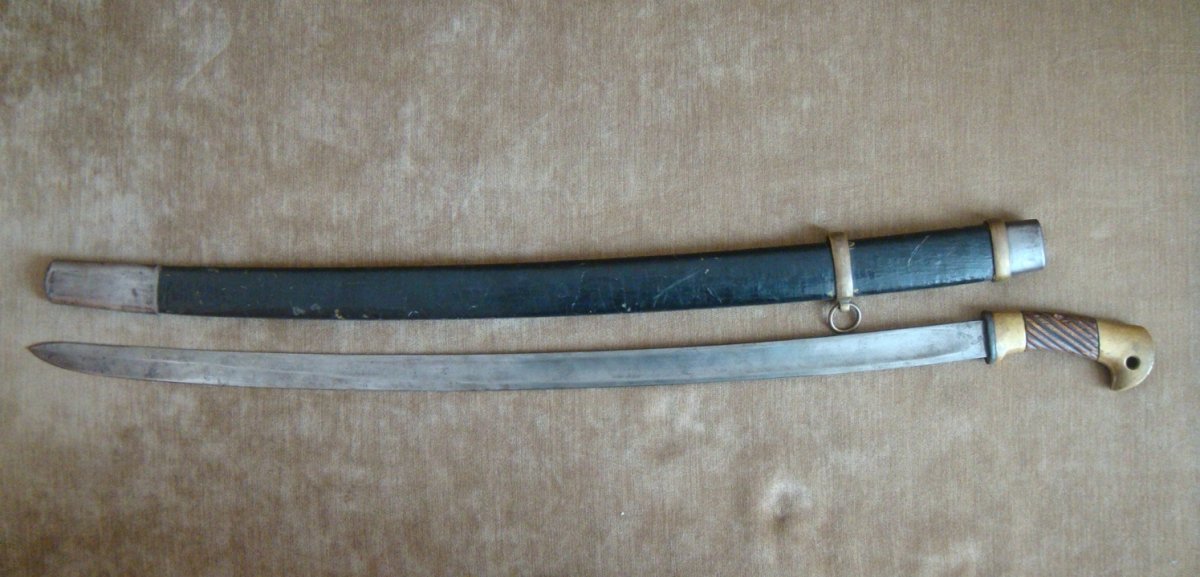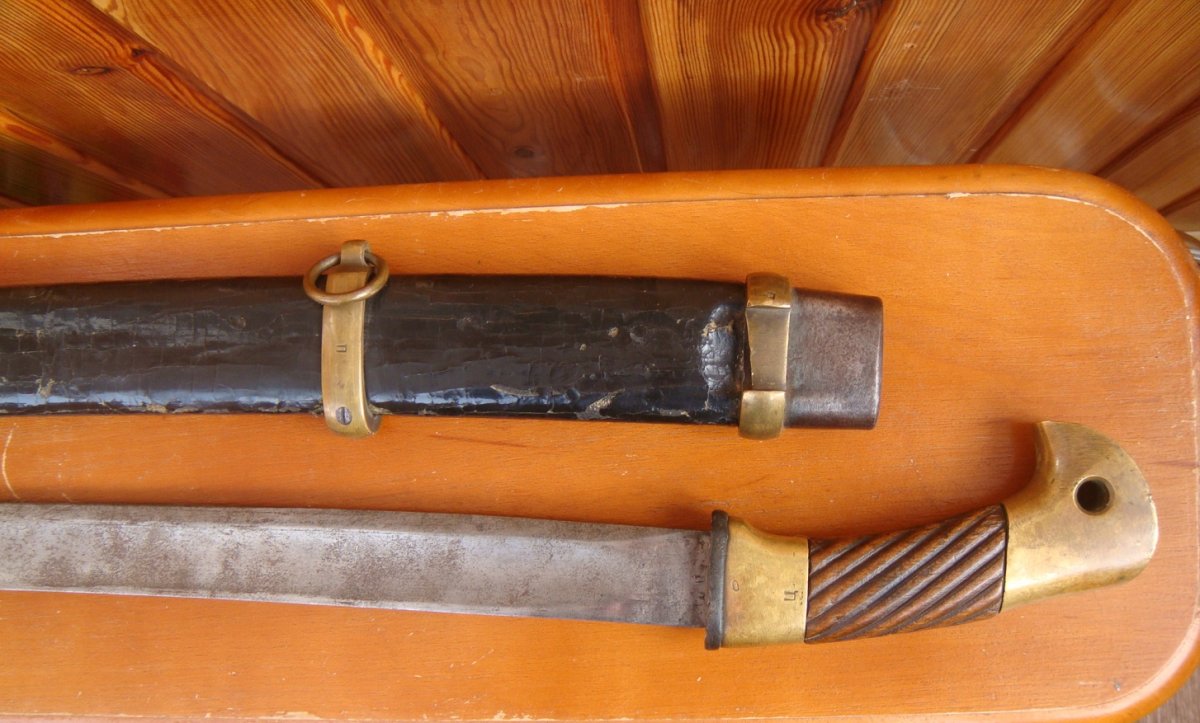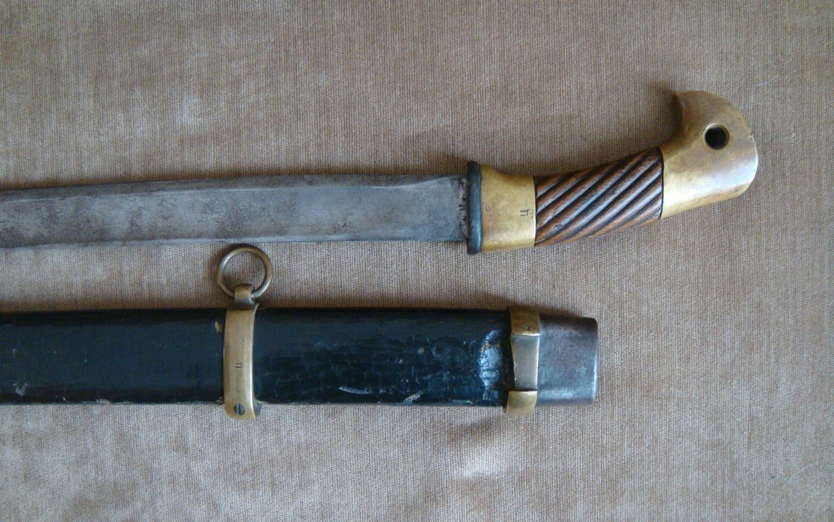 Шашка производства Златоустовского инструментального комбината, 1944 года выпуска. Полностью родной оригинальный сбор. На одних клеймах (Ц). Не чистилась, не реставрировалась. Обсуждение: https://reibert.info/threads/shashka.1000581/#post-11942237 Любые доп. фото по запросу.