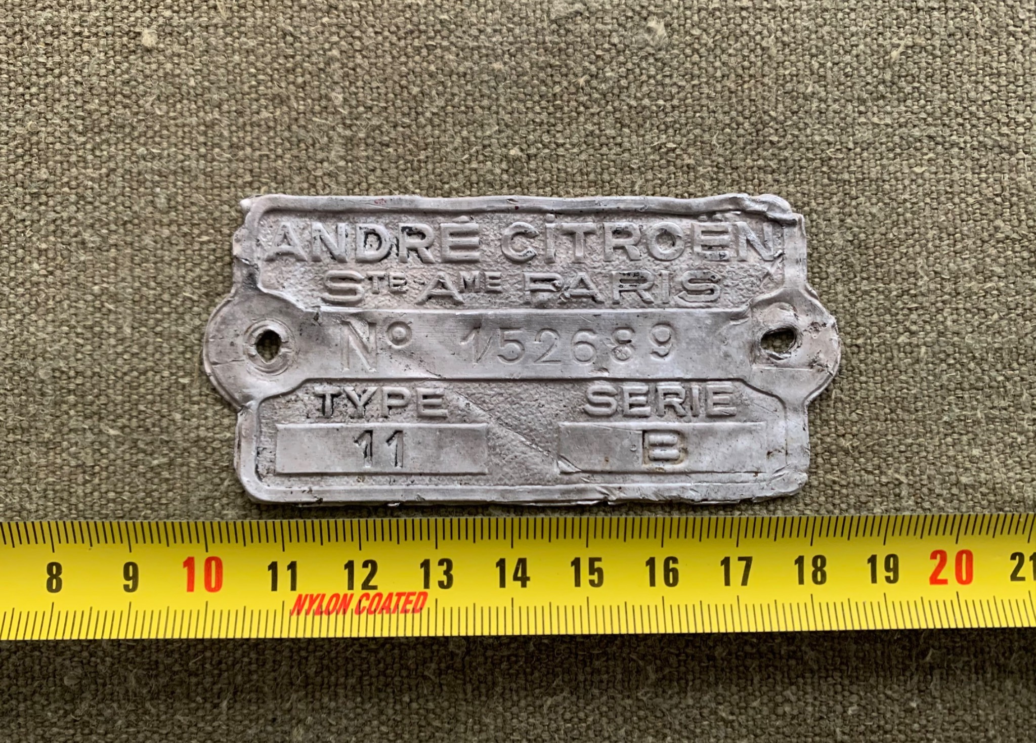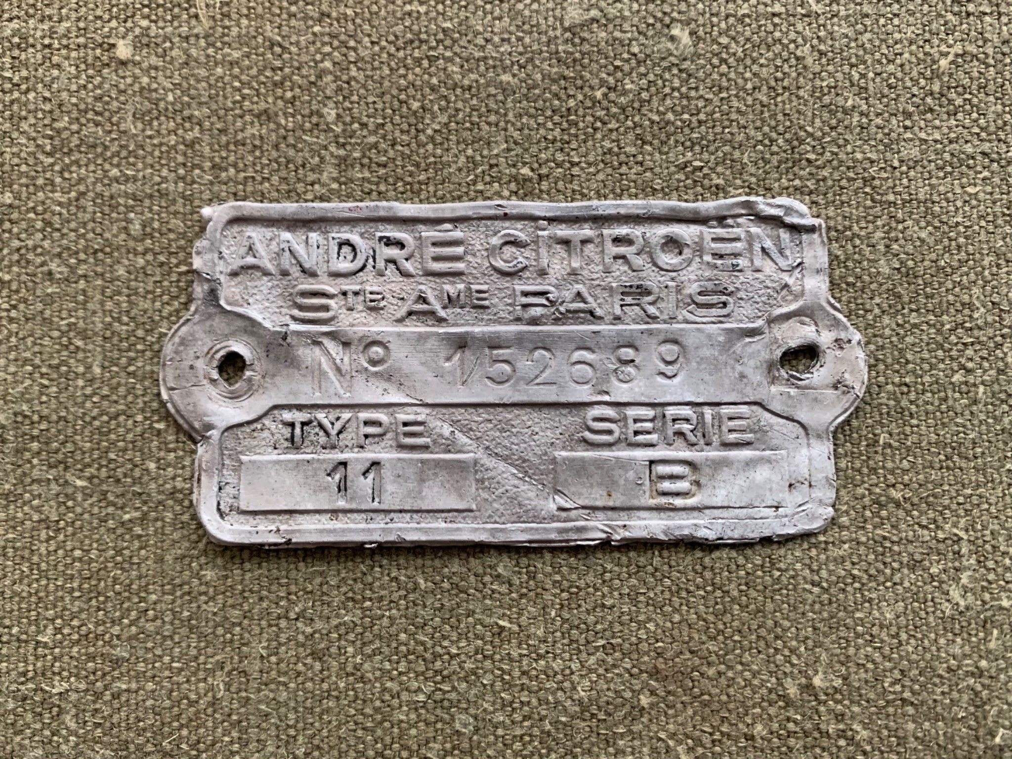Ідентифікаційна табличка від автомобіля Сitroën Traction Avant 11B.