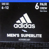 Склад : 98% polyester, 2% spandex. Суміші еластичної тканини, з технологією Aeroready, яка швидко відводить вологу від тіла та випаровує її. Пласкі шви виключають натирання. Ребристі манжети допомагають шкарпеткам залишатися на місці. Зроблено у В'єтнамі. Нові. Оригінал. Ціна за упаковку 6 пар