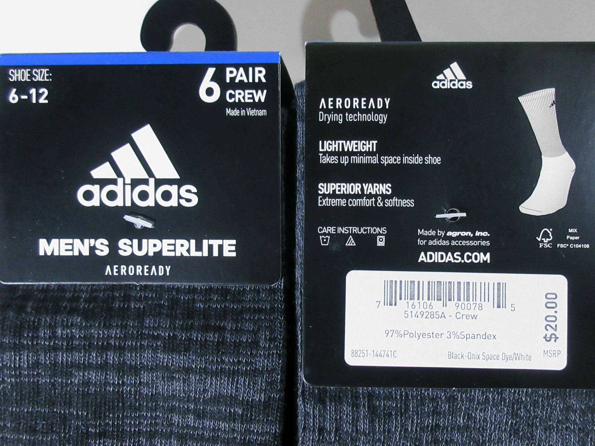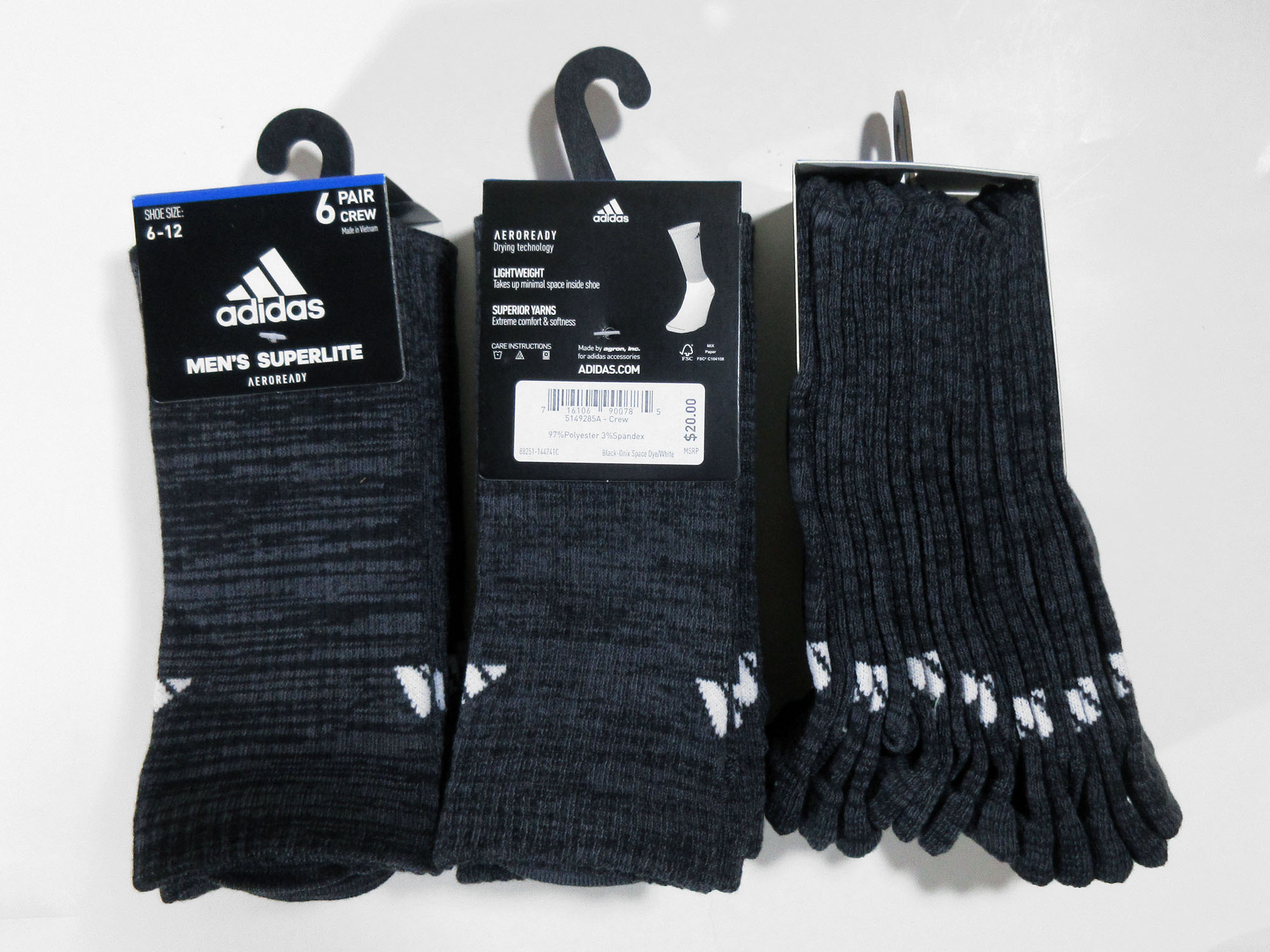 Склад : 98% polyester, 2% spandex. Суміші еластичної тканини, з технологією Aeroready, яка швидко відводить вологу від тіла та випаровує її. Пласкі шви виключають натирання. Ребристі манжети допомагають шкарпеткам залишатися на місці. Зроблено у В'єтнамі. Нові. Оригінал. Ціна за одну пару.