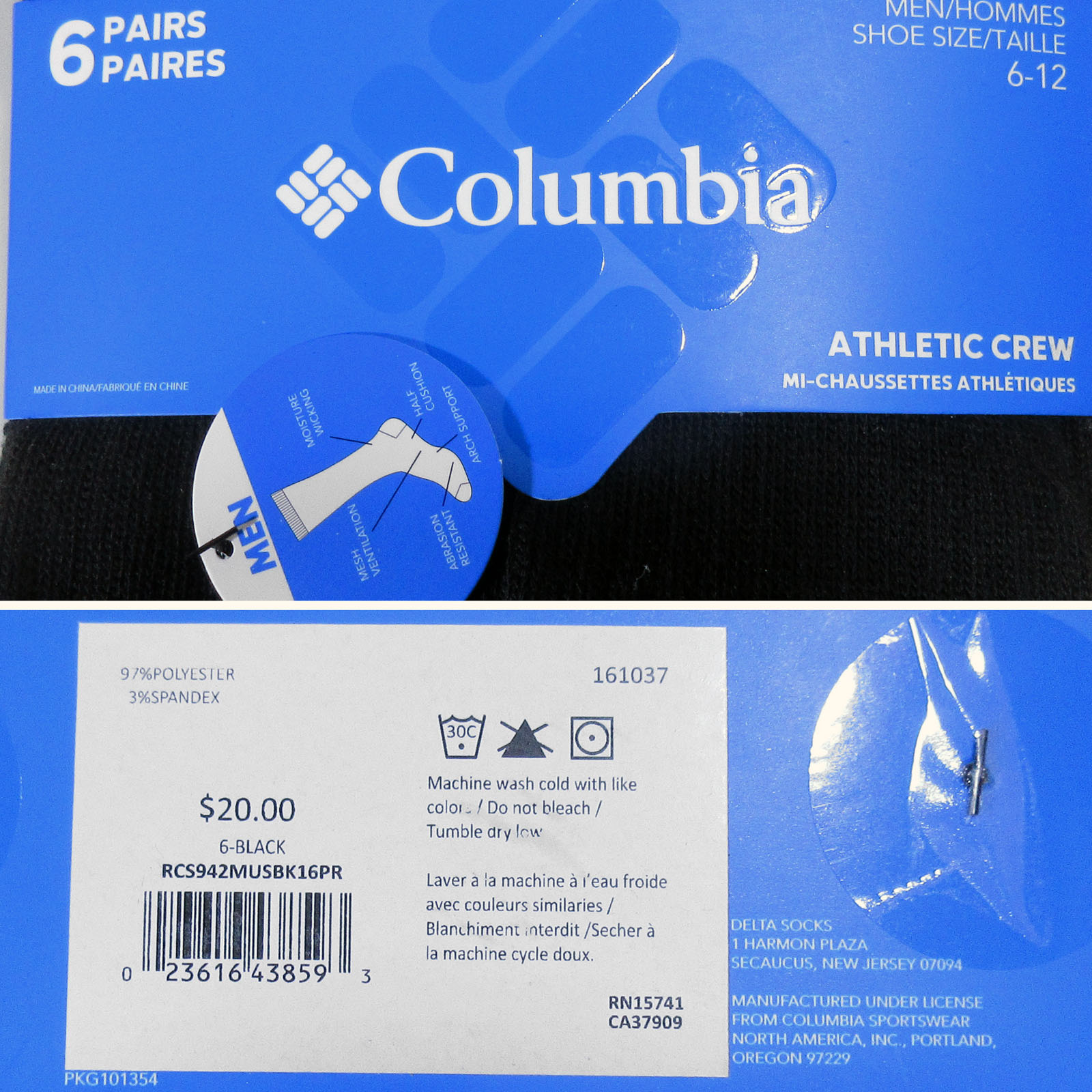 Шкарпетки Columbia Half-Cushion Athletic Crew нові оригінал носки [упаковка 6 пар] Новий (в наявності 4 шт.)