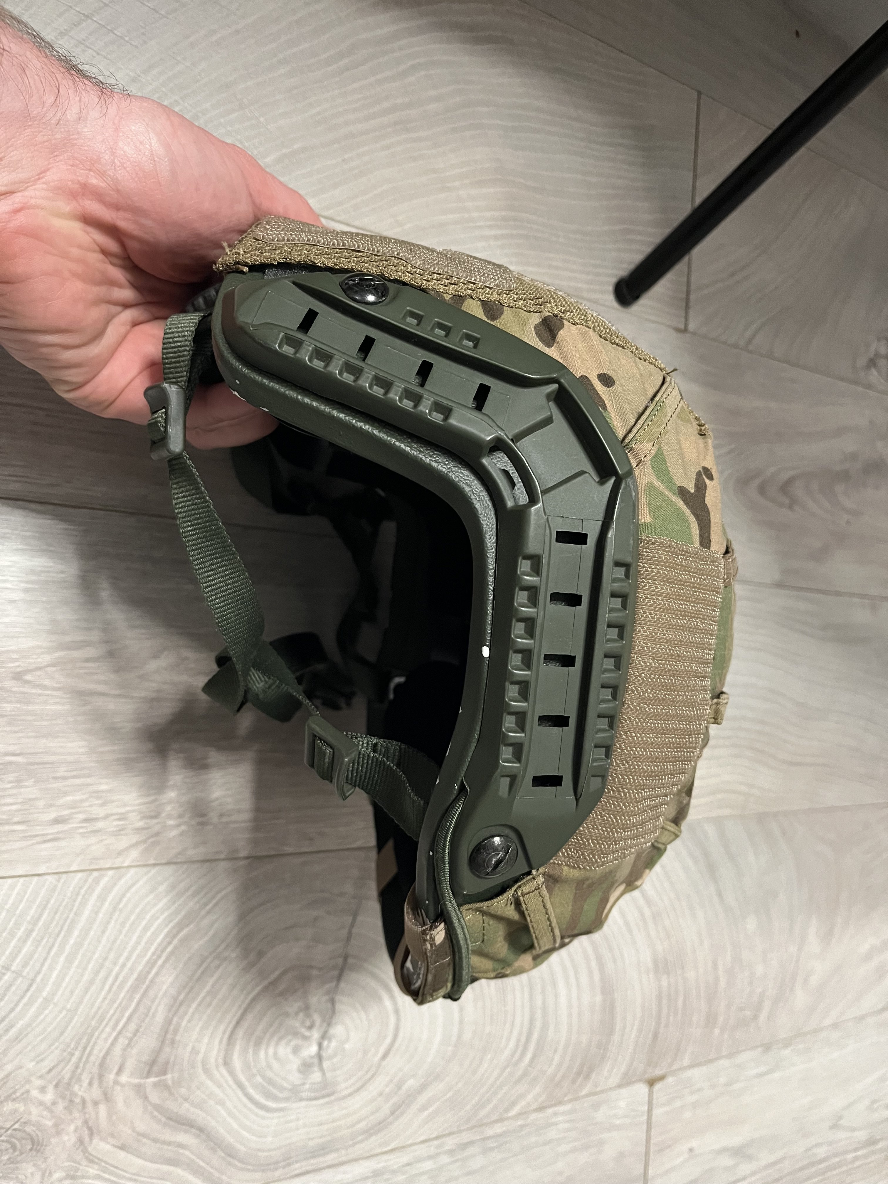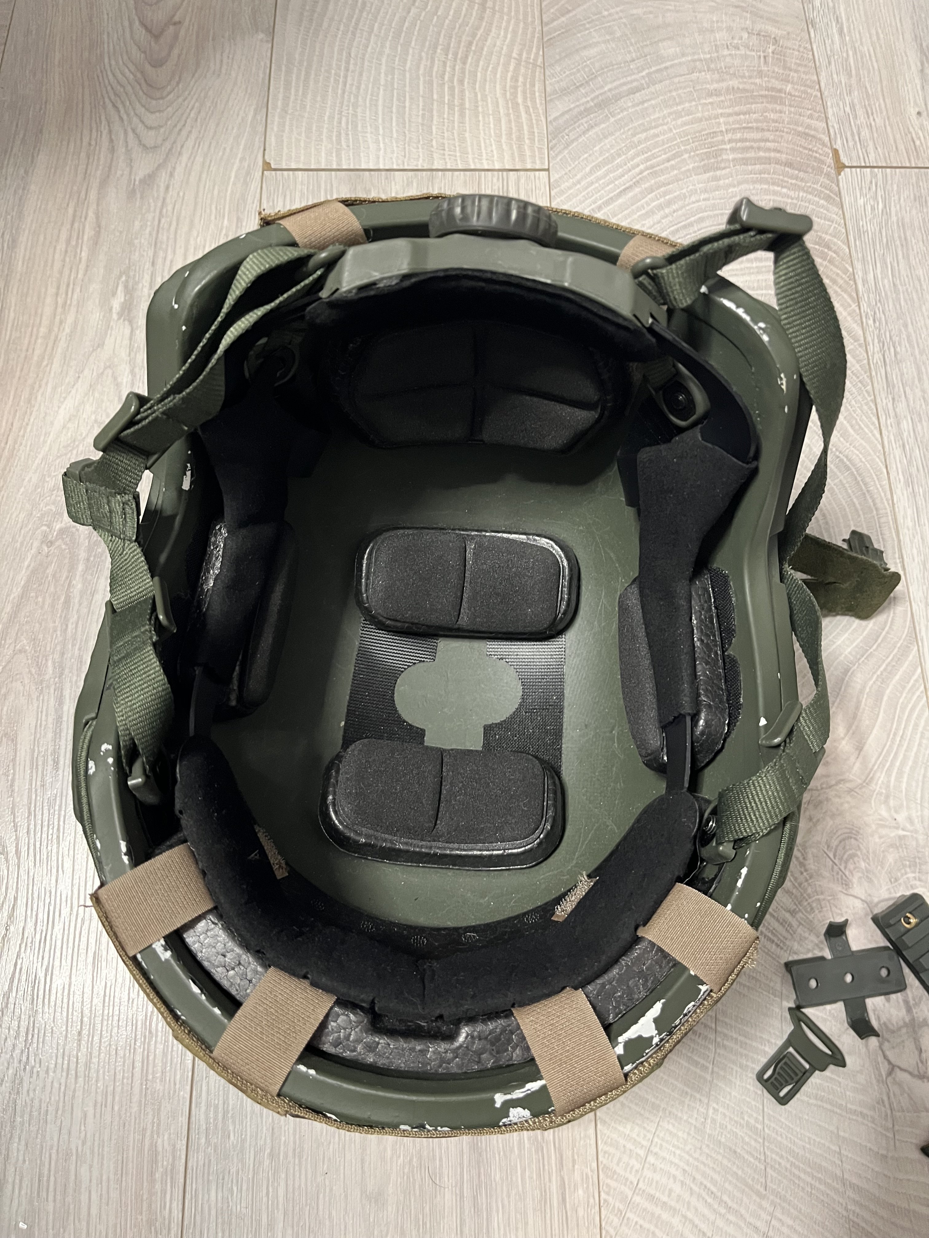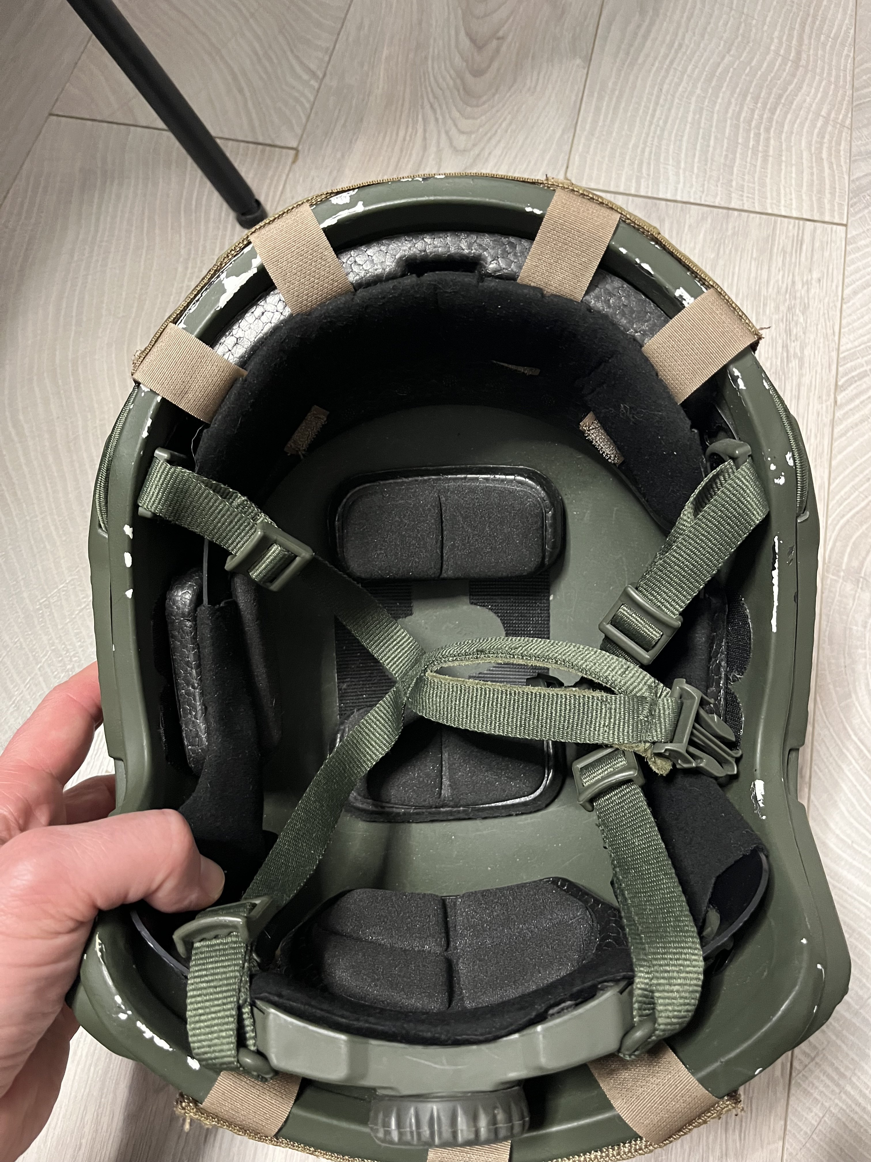 Стан нового, що видно з фото всередині, лиш має пошкодження фарбованого покриття внаслідок необережного транспортування. Є комплект кріплень, показані на фото. Кавер відомого виробника СТС, новий. Розмір шолома ХL. Захист 3а.
