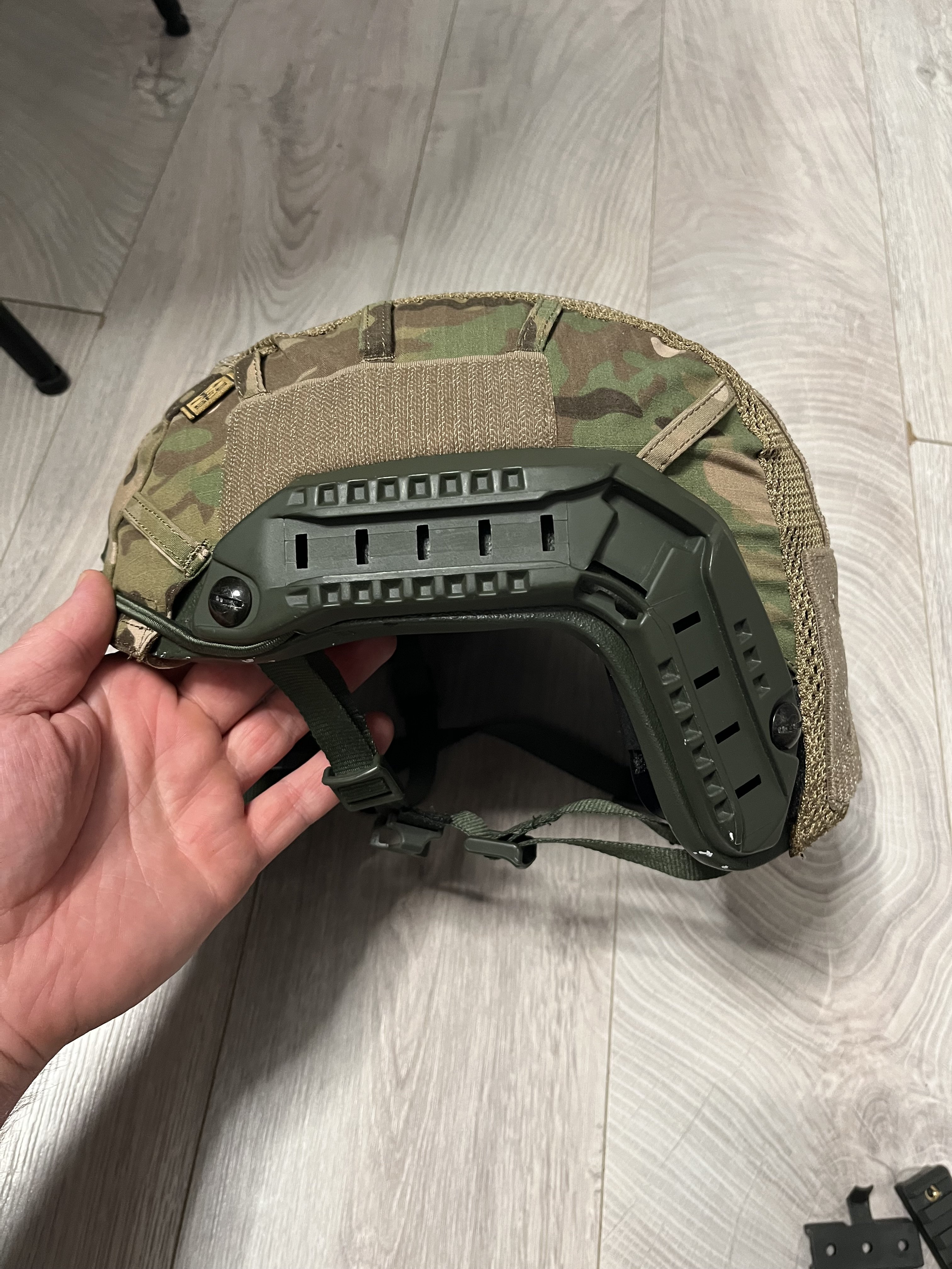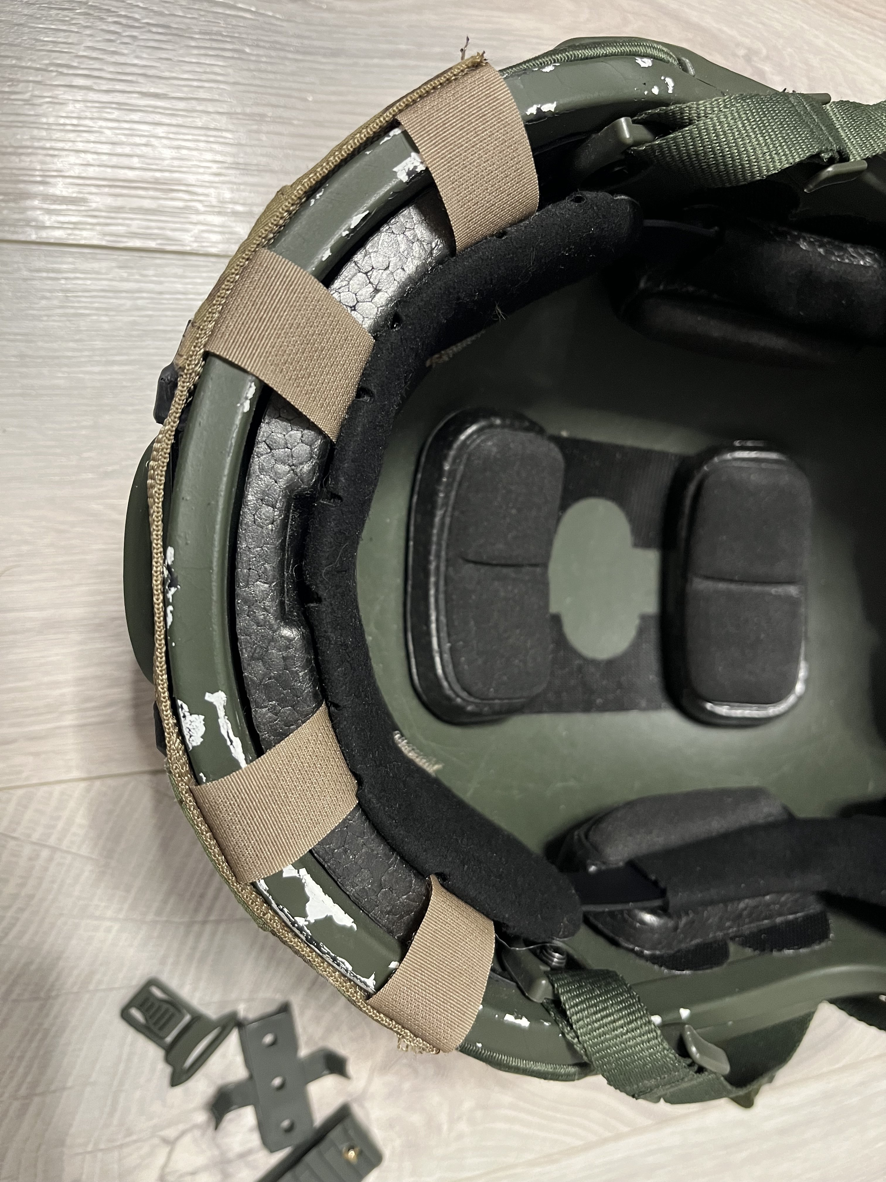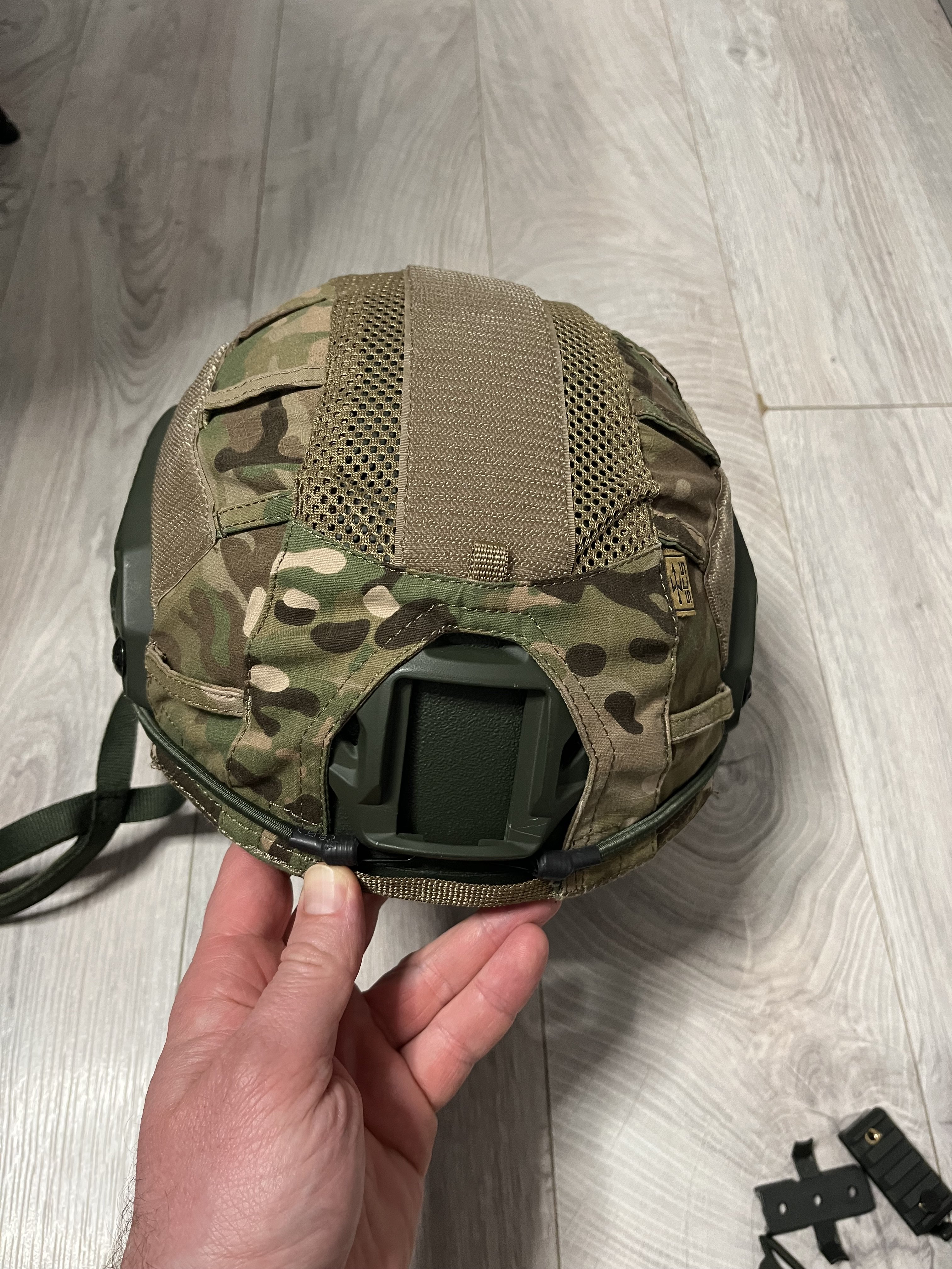 Стан нового, що видно з фото всередині, лиш має пошкодження фарбованого покриття внаслідок необережного транспортування. Є комплект кріплень, показані на фото. Кавер відомого виробника СТС, новий. Розмір шолома ХL. Захист 3а.