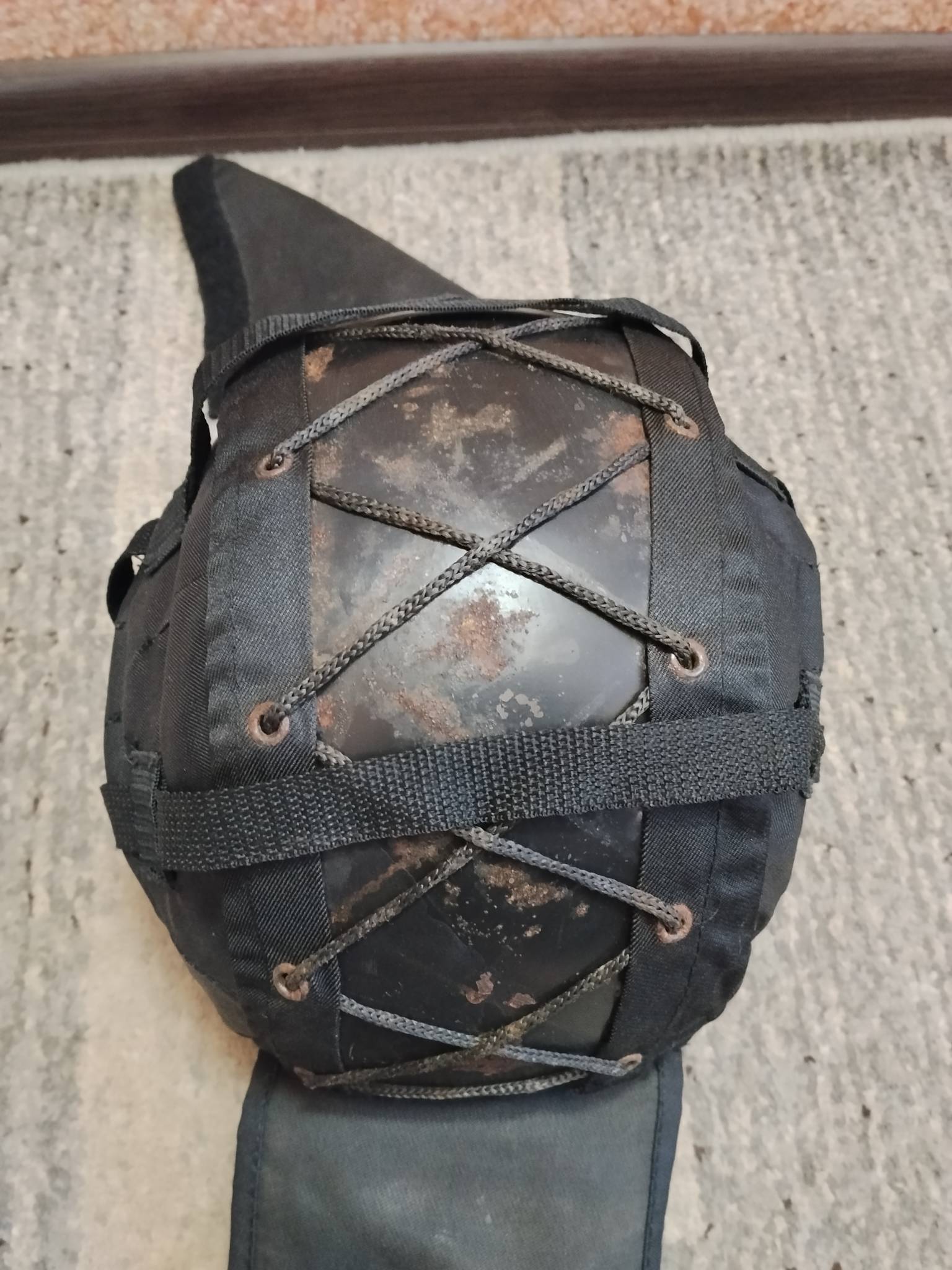 Шолом був у використанні, тому має сліди носки. Сталеві плити на місці, мають не значні рижики іржі.