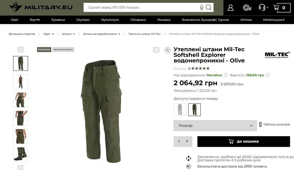 Штани Mil-Tec Softshell Explorer водонепроникні - Olive Новий