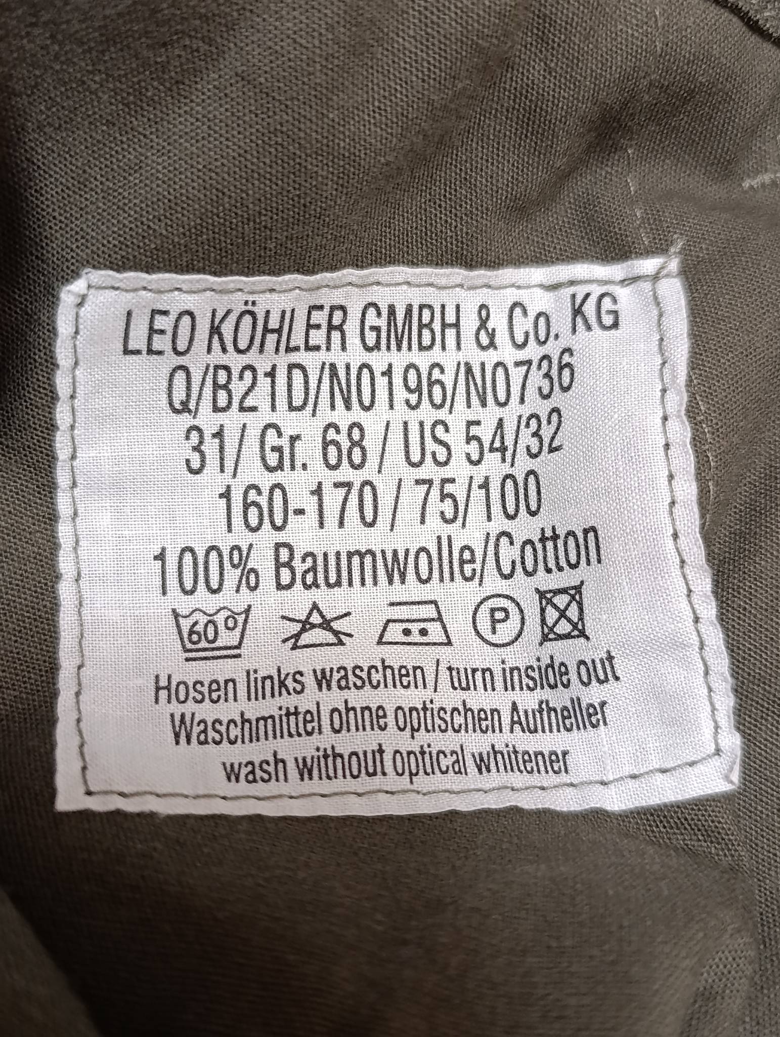 Штани молескін Leo Kohler, олива, Gr.68 (US 54/32) на пояс 137см, стан склад