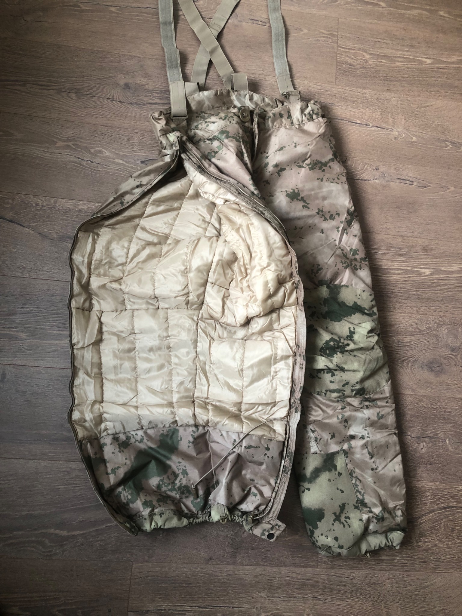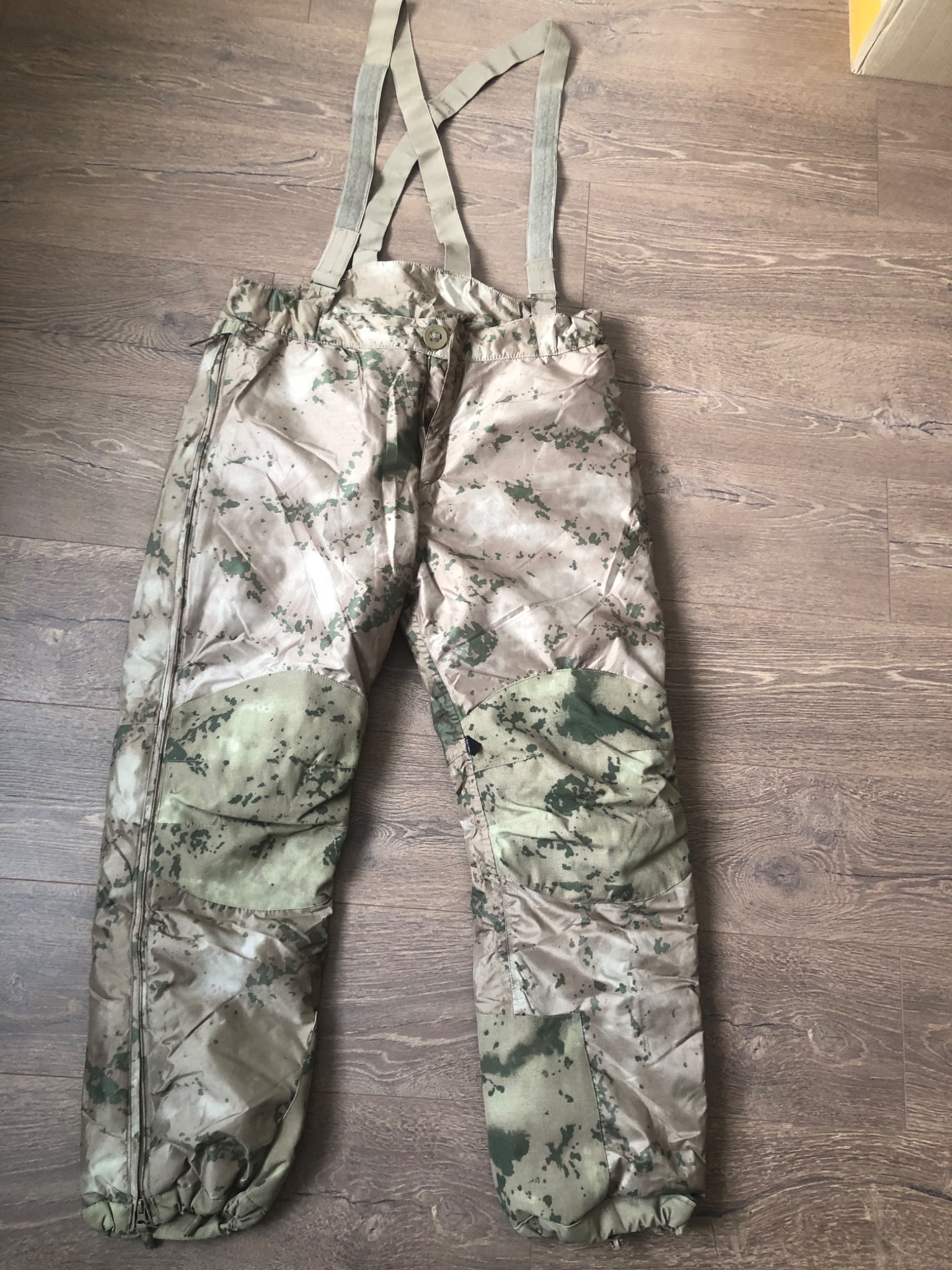 Новые штаны-утеплитель ( седьмой слой) одеваться по верху форменных, не промокают, не продувается на резинке и подтяжках ( очень удобно регулировать по ширине и росту) и очень удобно и комфортно сидят на теле, контрактная форма американских сил специальных операций!