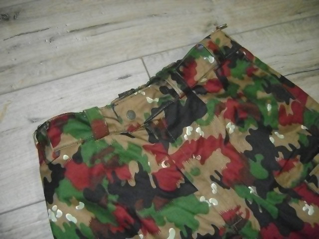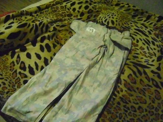 Не выгоревшие, без дыр и штопок. 5 карманов, на поясе сзади-резинка, шлейки под широкий поясной ремень. Камуфляж- насыщенный, "темноватый". Обратная сторона- белая, без пятен.