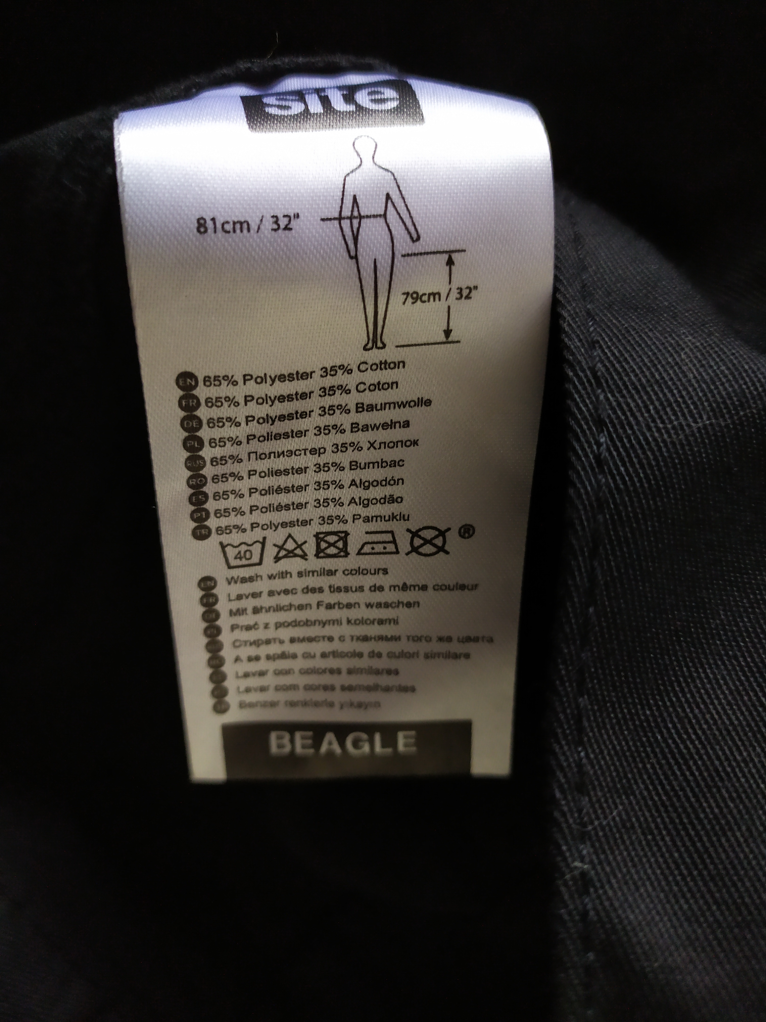 Размер по бирке на пояс в обхвате до 81 см и шаговый шов до 79 см. Замеры : пояс полуобхват – 41 см, ширина бёдер – 48 см, посадка – 30 см, штанина внешний/внутренний шов – 107/78 см.