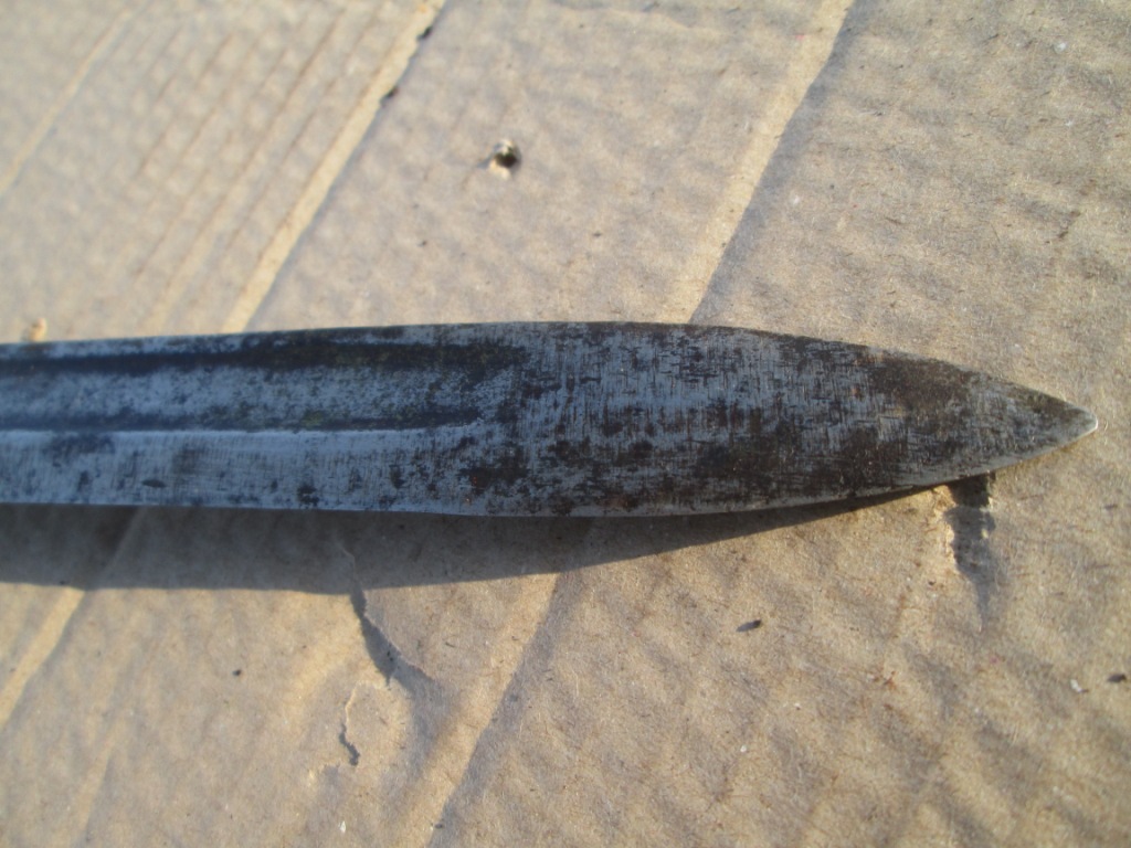 Штик-ніж без раковин, рівний..гарду пробував замінити з донора, незавершив.. є клеймо все показав на фото.
