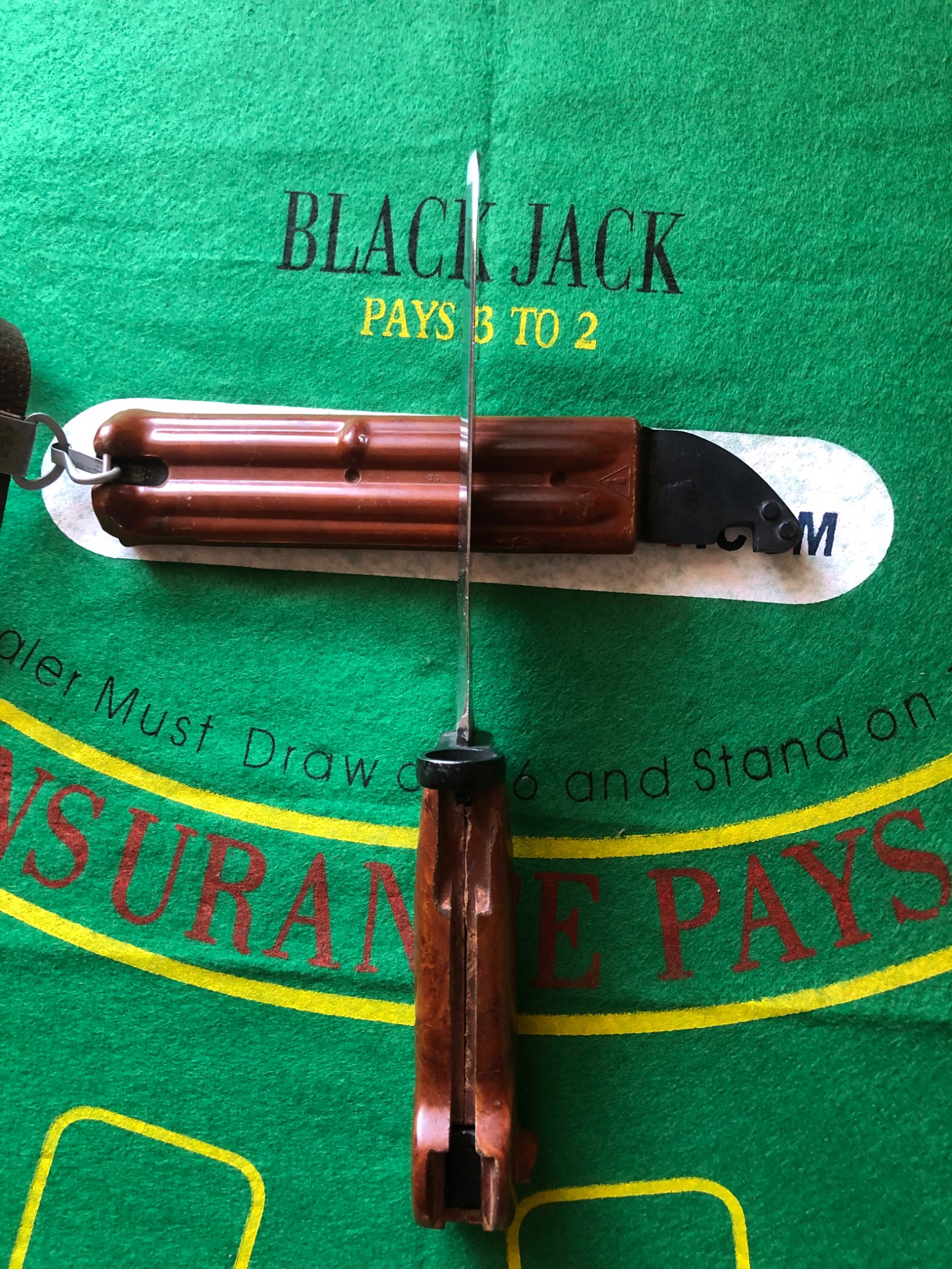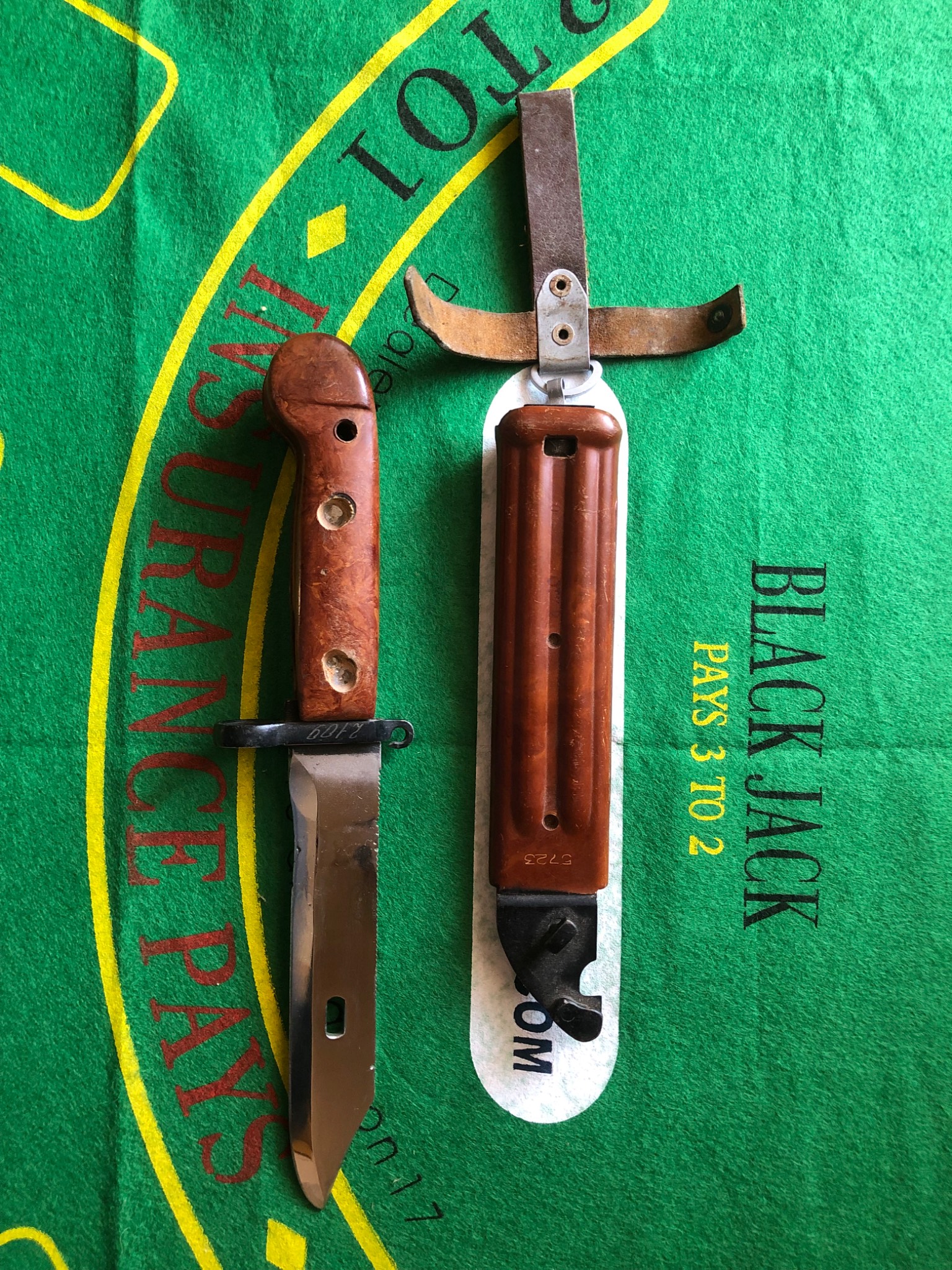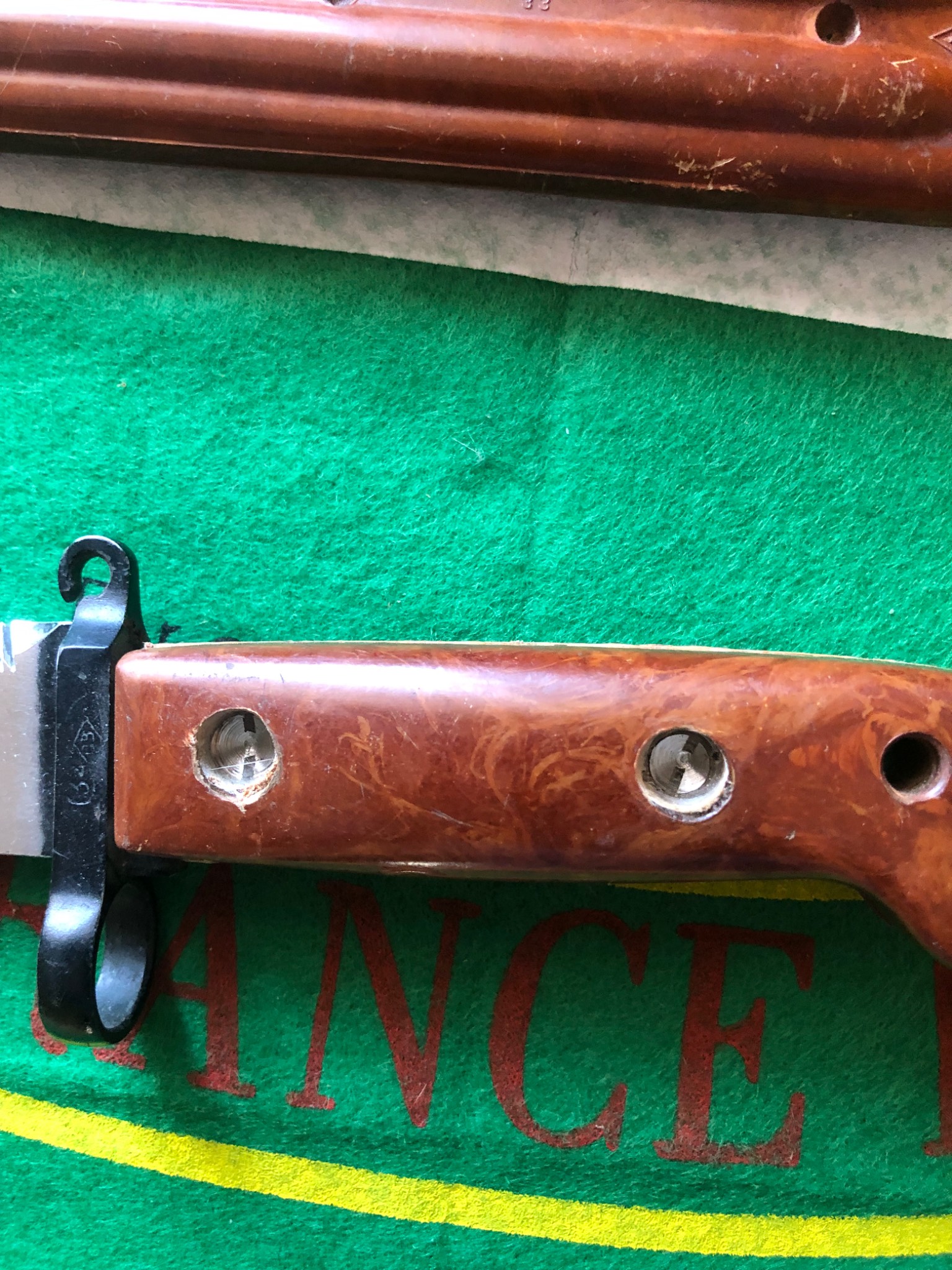 Штик ніж точну модель не знаю, дістався в такому стані, лезо підварювалось на рукоятці отвори від свердла, лезо не Рівне на фото видно.