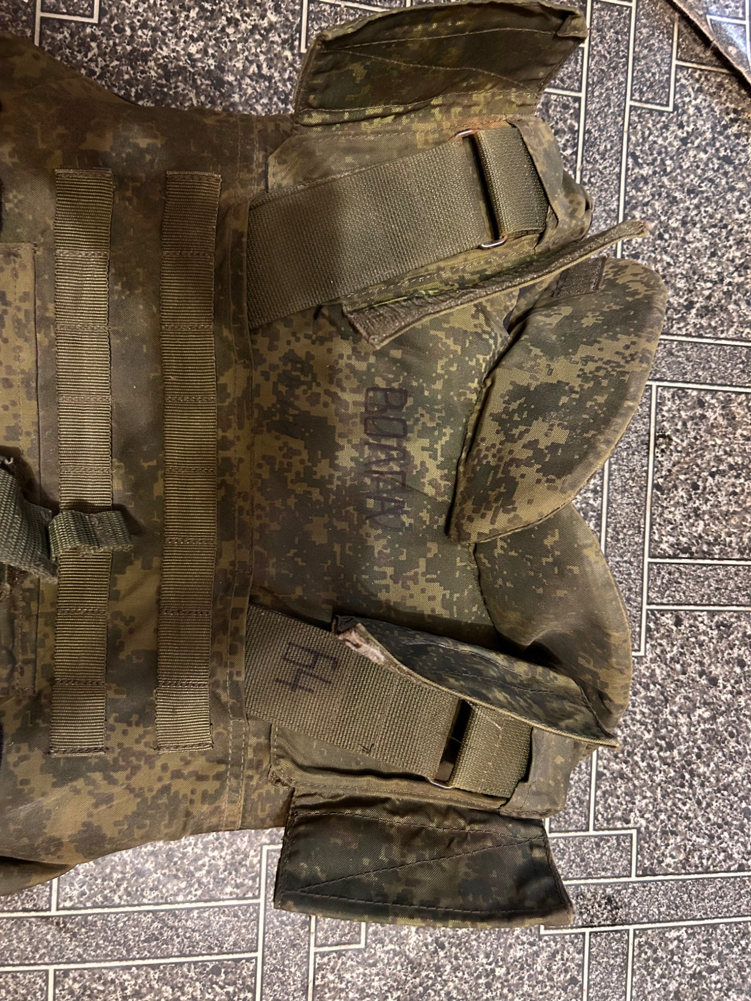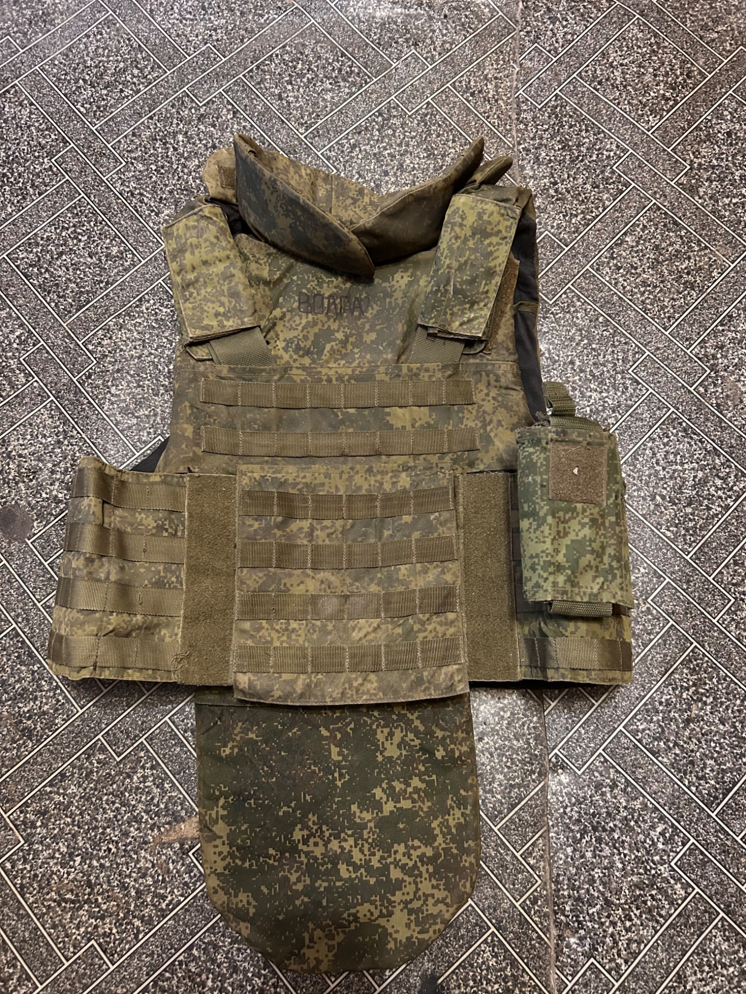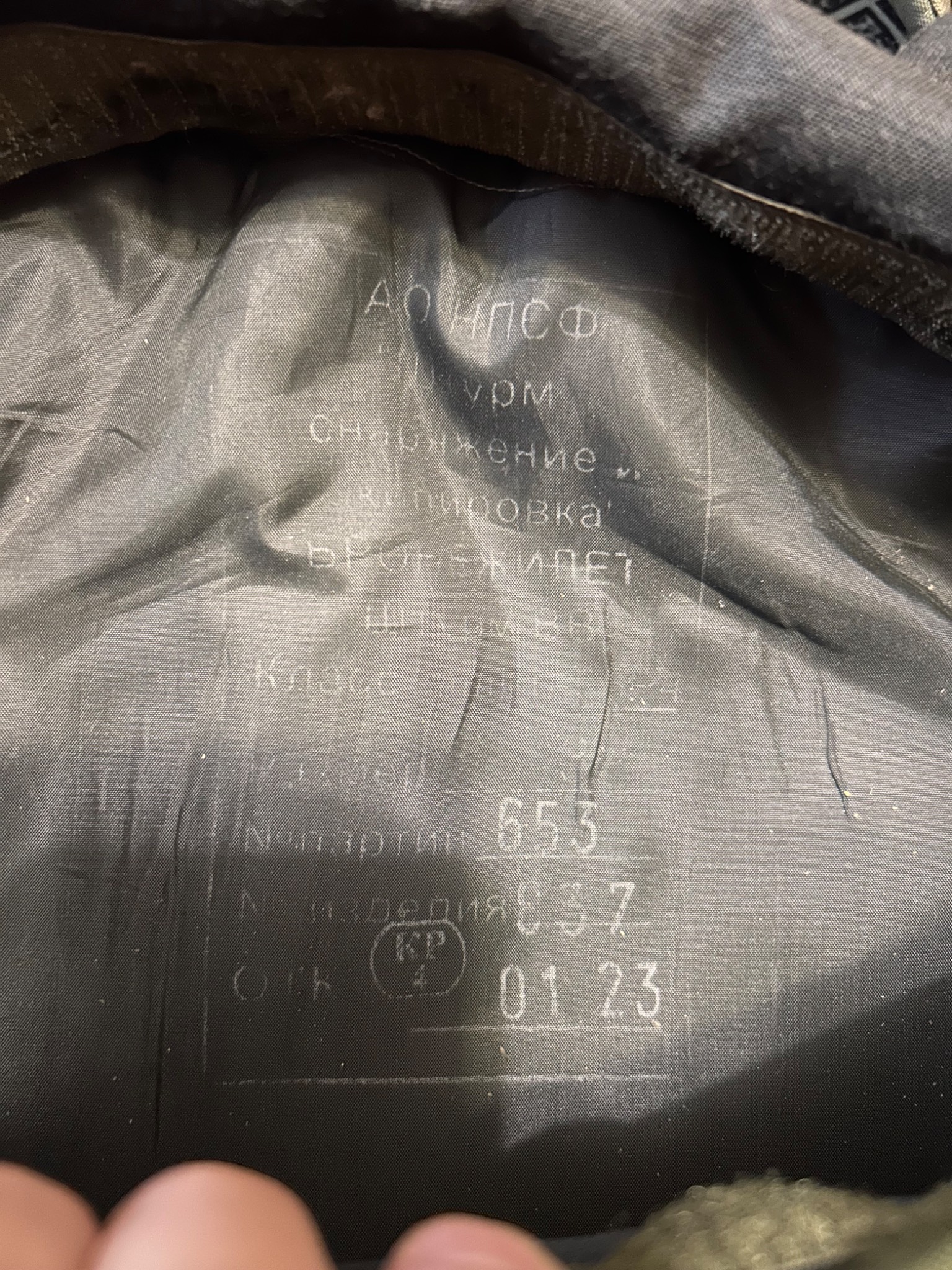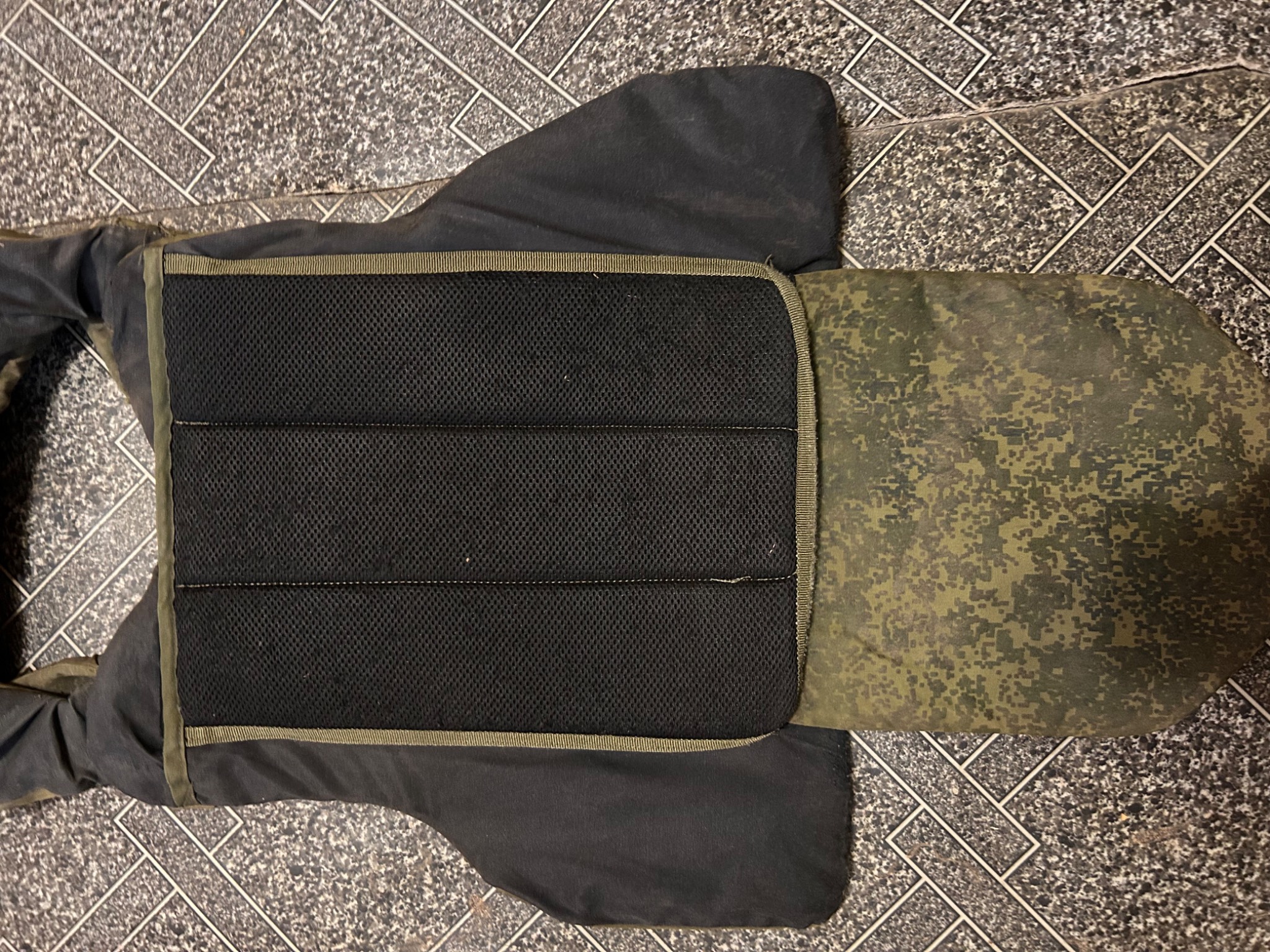 Бронежилет Штурм ВВ , 3 розмір , кевлар є перед , зад , шия , напашник , бокового кевлару немає , перед та зад кевлар йде подвійний , також є підсумок під джгут