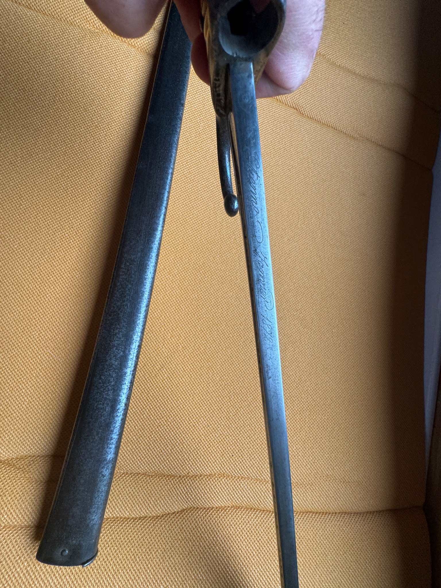 состояние хорошее, надпись видно хорошо , не гнутый , ножны хорошие . парник. не точен. длинна соответствует