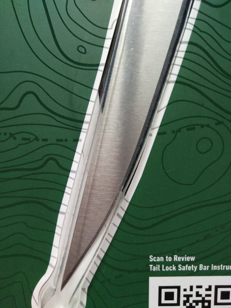 Сталь клинка по современным меркам простенькая - 5Cr13MoV с заявленной твердостью в 53-55 HRC. Но учитывая изначальный «фронт работ» для этого ножа - выбор вполне разумный и осознанный. Отличная коррозионная стойкость (нож все же для рыбака, то есть частый контакт с водой, в том числе и солёной). Бюджетная стоимость. Легкость правки и заточки, а при его толщине вернуть остроту вообще дело буквально пары минут.