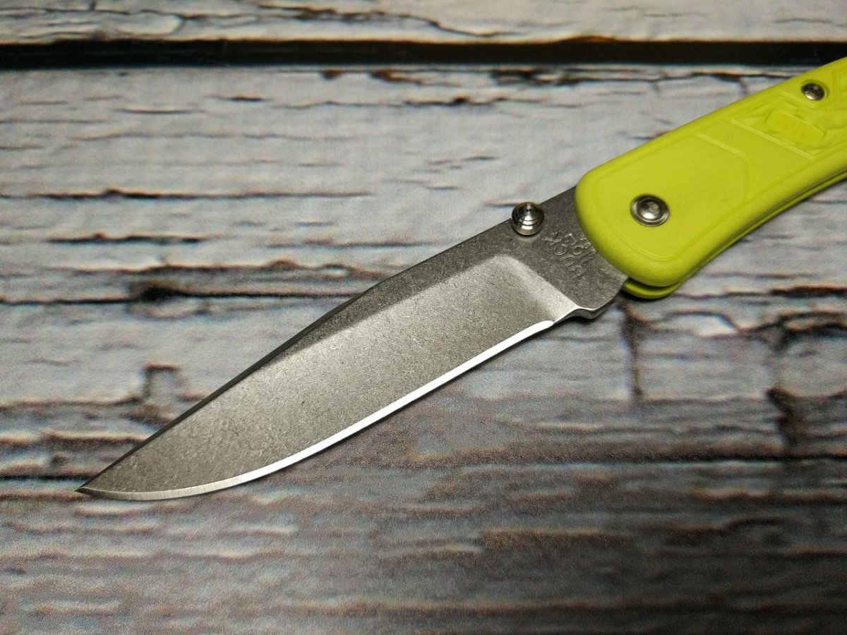 Общий вид и размер остался практически без изменений и легко узнаваем. Клинок приобрел практичный финиш Stonewashed и двухсторонний шпенек, для удобного однорукого открывания. Рукоять этой модели изготавливается из материала GFN (армированный стекловолокном нейлон), современный и неприхотливый в использовании материал. Сам материал слегка шершавый на ощупь, что в сочетании с объемной текстурой дают хорошее сцепление с ладонью и управляемость при работе. Цветов рукояти на выбор четыре, так что каждый сможет выбрать на свой вкус. Нож основательно «похудел», как по общему весу, так и по толщине, что для EDC ножа является довольно важным фактором. И наконец - нож приобрел клипсу! И при этом, на мой взгляд, отличную клипсу - она не сильно длинная, но при этом достаточно широкая для комфортного одевания и надежного удержания ножа на кармане. Второй момент - это клипса «глубокой посадки», а это то, что нравится многим пользователям, но почему то редко делается производителем. И «на закуску» - в клипсе вырезана знаменитая «наковальня Бака», увидев которую знающий человек сразу поймет, нож какой фирмы у вас «на кармане».