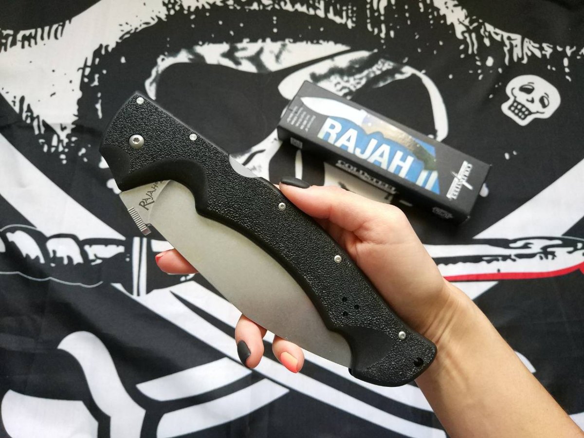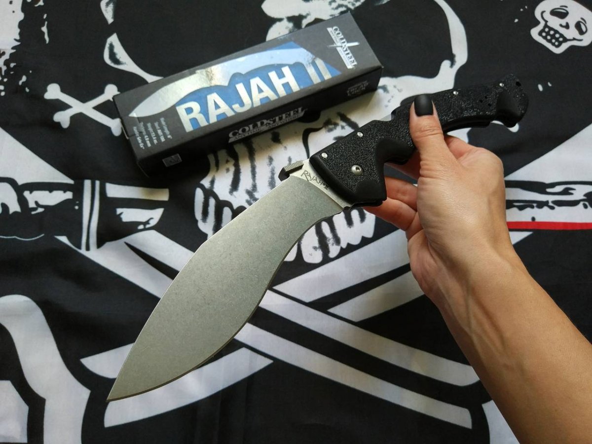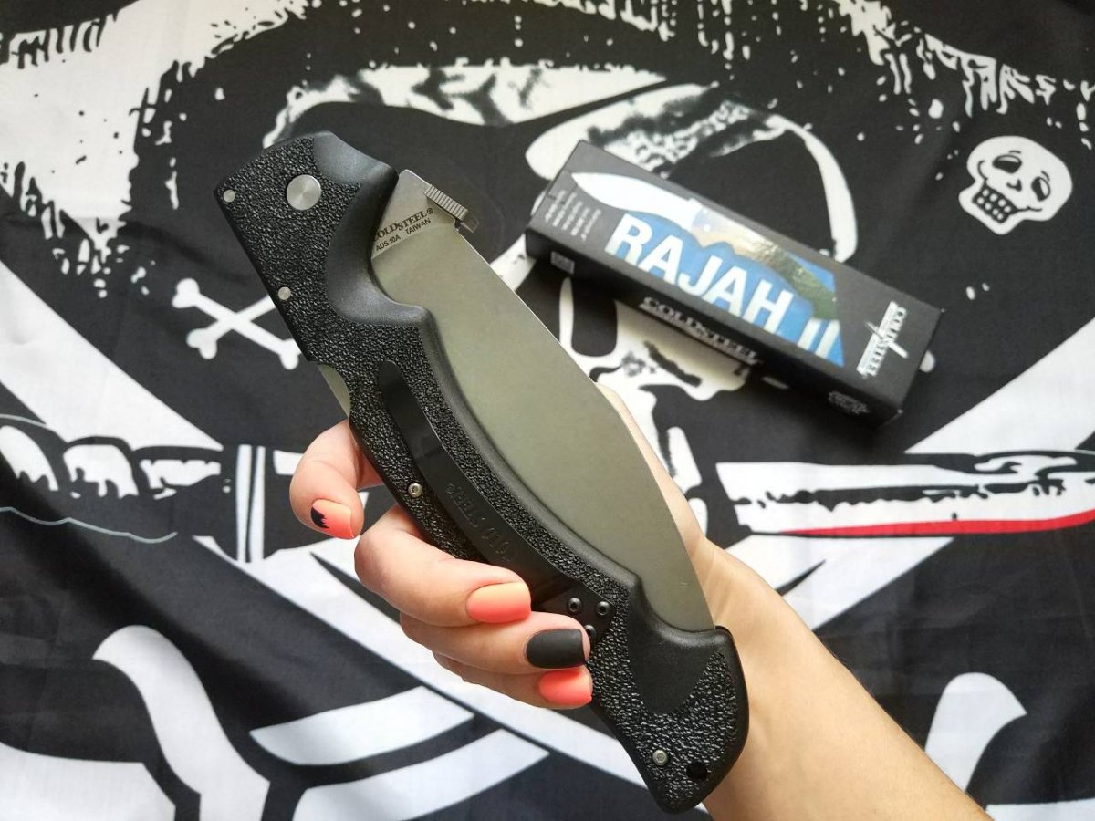 В свое время форма кукри создавалась для идеальных рубящих ударов, поэтому клинок имеет изогнутую форму и толстый обух. Специалисты Cold Steel удачно сумели реализовать главные принципы кукри в современной интерпретации складных ножей. Ножи Rajah получились прочными, удобными, с отличной сталью и очень практичными.