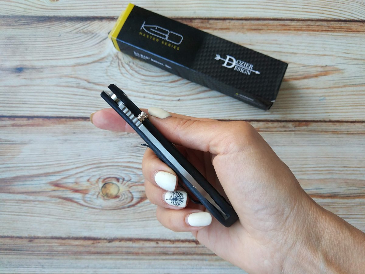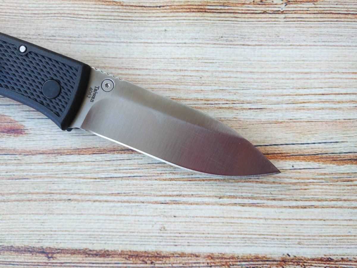 Взглянув поближе на сам нож, мы увидим клинок в форме Drop Point из хорошо зарекомендовавшей себя японской нержавеющей стали AUS 8A, надежный замок Back Lock, «цепкую» текстурированную рукоять из полимера Zytel® черного цвета и переставляемую клипсу. Нож вышел очень продуманным и удобным, легким и надежным, и при этом имеет вполне доступную цену, что не может не радовать)).