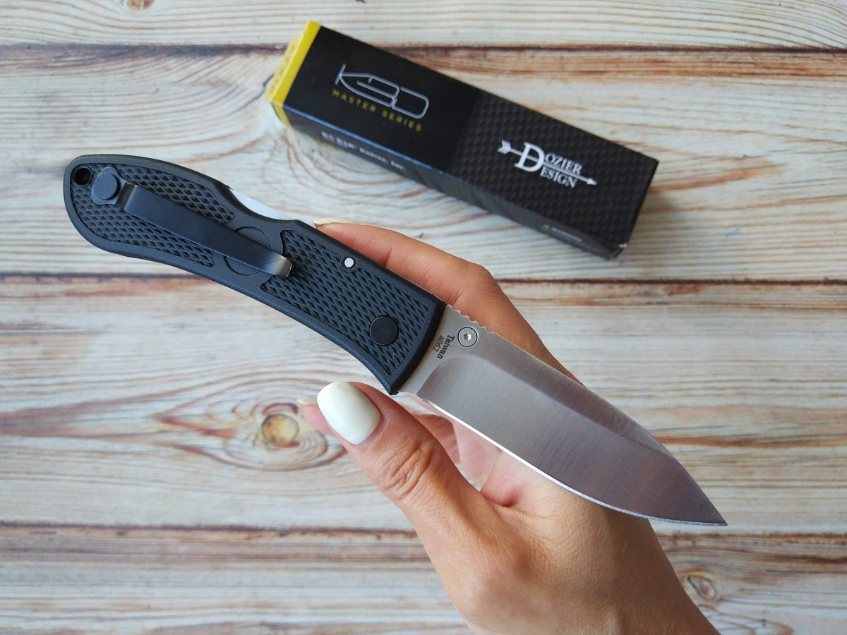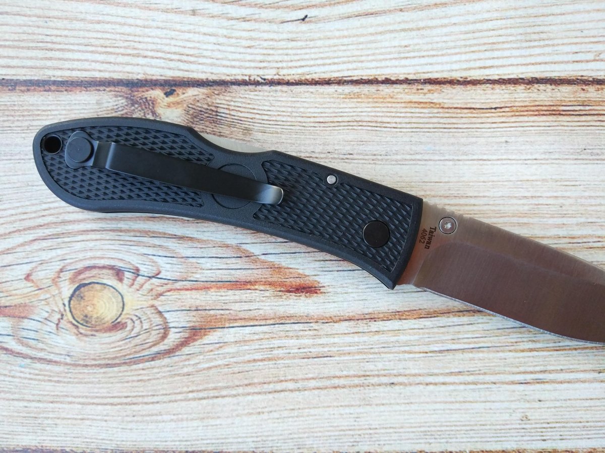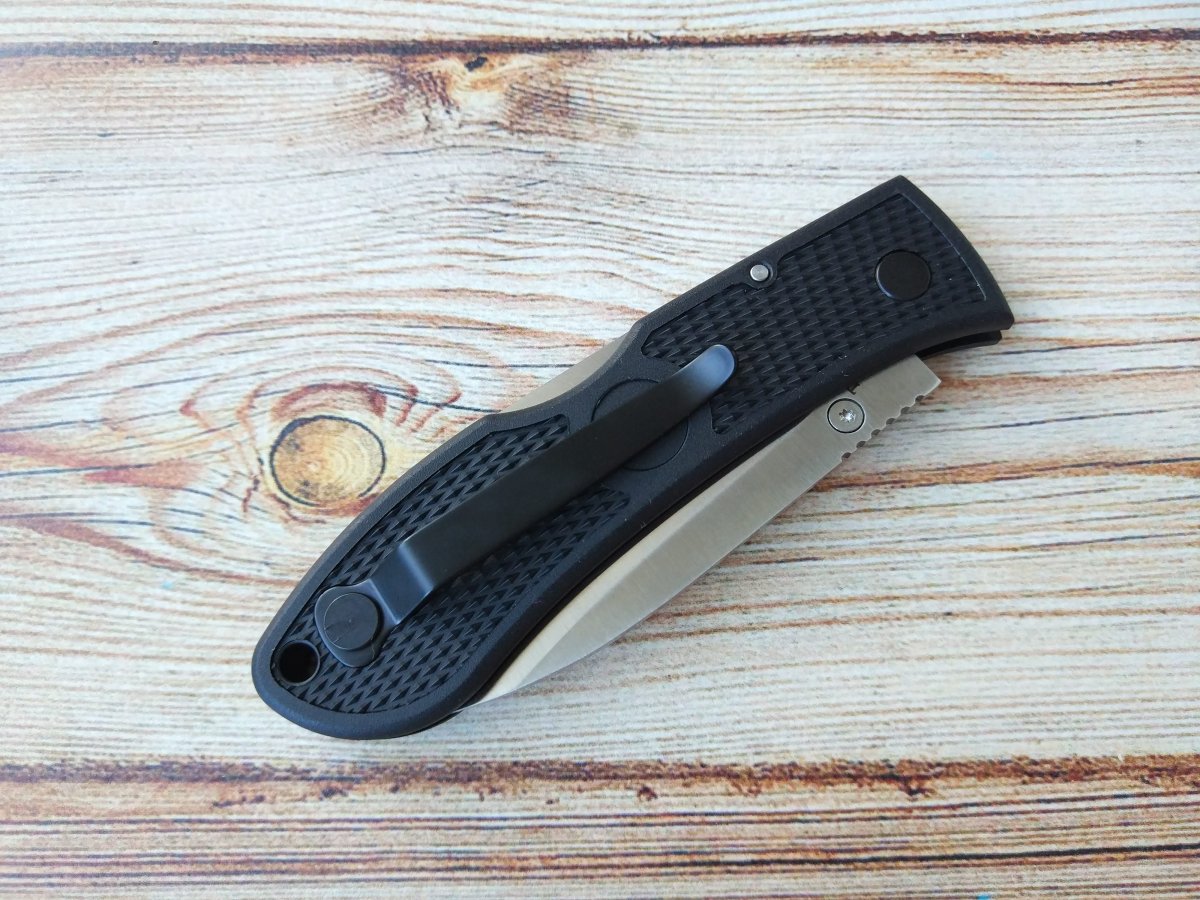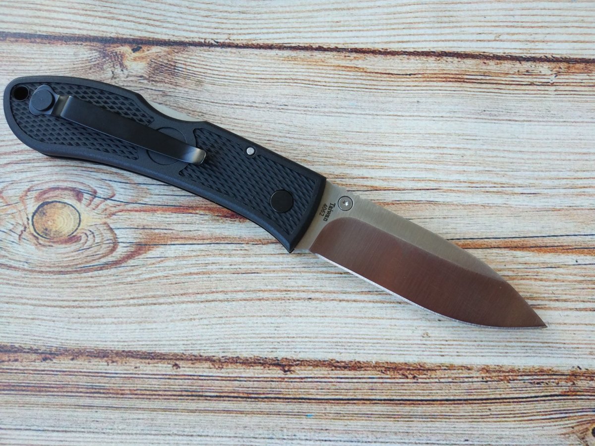 Взглянув поближе на сам нож, мы увидим клинок в форме Drop Point из хорошо зарекомендовавшей себя японской нержавеющей стали AUS 8A, надежный замок Back Lock, «цепкую» текстурированную рукоять из полимера Zytel® черного цвета и переставляемую клипсу. Нож вышел очень продуманным и удобным, легким и надежным, и при этом имеет вполне доступную цену, что не может не радовать)).