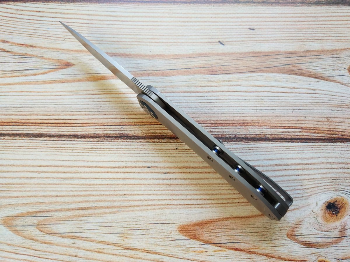 Форма клинка Drop Point. Данная форма считается наиболее универсальной в использовании. В целом форма, как самого клинка, так и ножа в целом, изящная и можно сказать классическая. Слабовогнутые спуски от обуха дают ножу уверенный рез и отличную проникающую способность. Плавник флиппера формирует небольшую удобную гарду в раскрытом положении и добавляет безопасности в обращении.