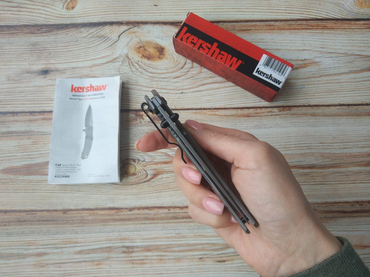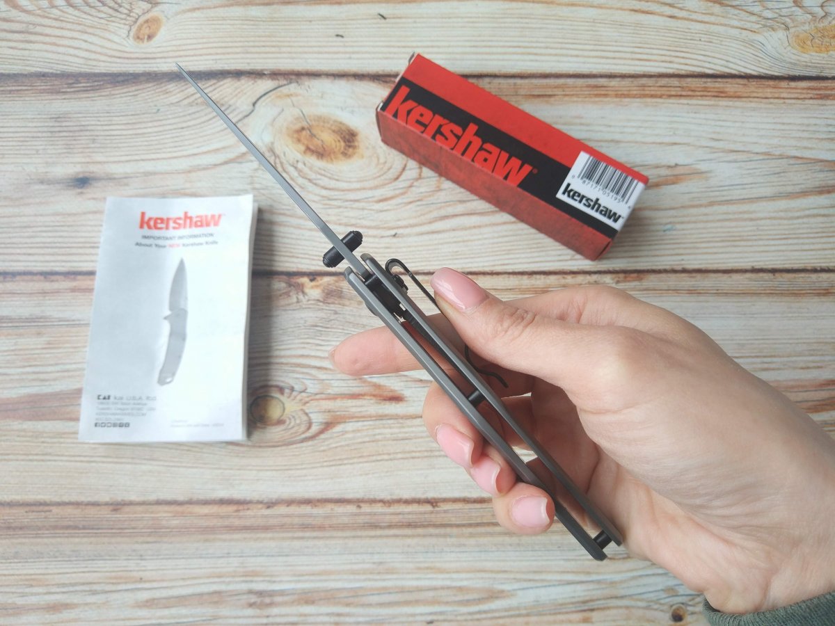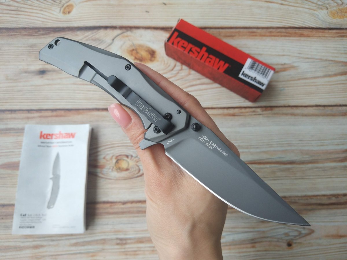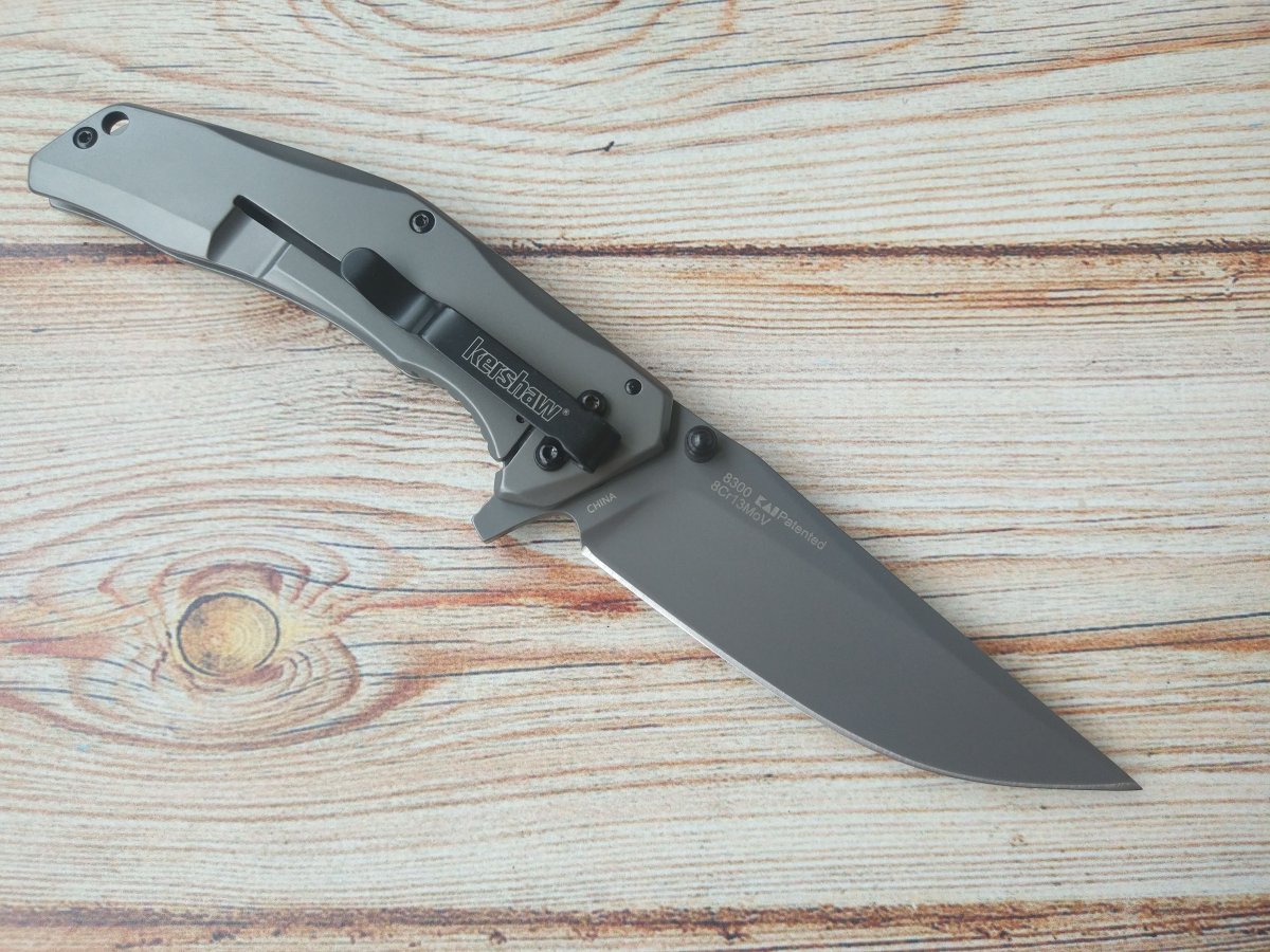 Клинок Kershaw 8300 DuoJet изготовлен из коррозионностойкой стали 8Cr13MoV и имеет форму Clip Point с вогнутыми спусками. Подобная позволяет ножу одинаково эффективно работать, как по мягким, так и по твердым и плотным материалам. Универсальность клинка демонстрирует не только его режущая кромка, но и достаточно прочный кончик – более толстый, чем можно было ожидать, рассуждая о бритвенных спусках клинка. Тут, формированию весьма хорошего прокалывающего функционала помогло решение выполнить тонкое фальшлезвие, не доводя до самого кончика и, соответственно, не ослабляя его. Получившийся кончик оказался вполне «ковырятельным» для решения большинства офисных задач. И хотя, основными составляющими функционала этого EDC-инструмента, являются режущий и колющий, однако, клинок обладает и, достаточной для выполнения большинства утилитарных офисных работ, прочностью. В итоговом определении функционала ножа можно сказать, что Kershaw8300 DuoJet– отлично сбалансированный универсальный EDC-девайс.