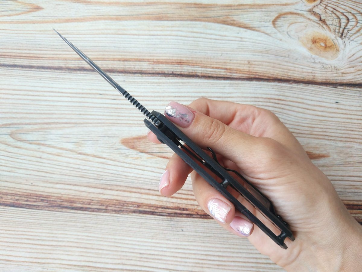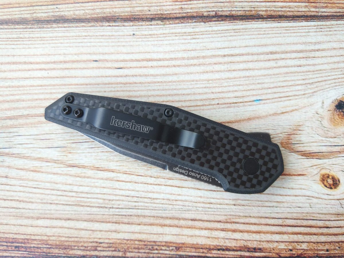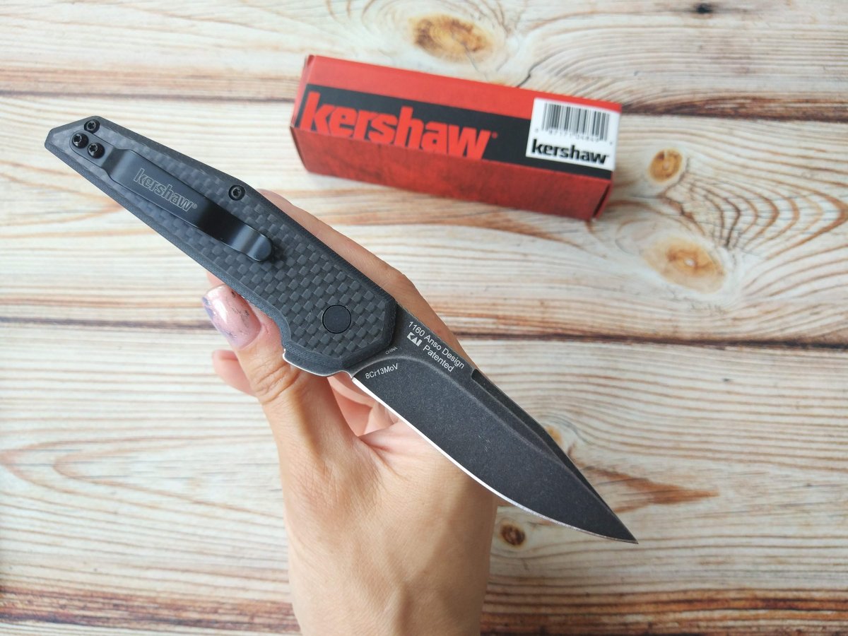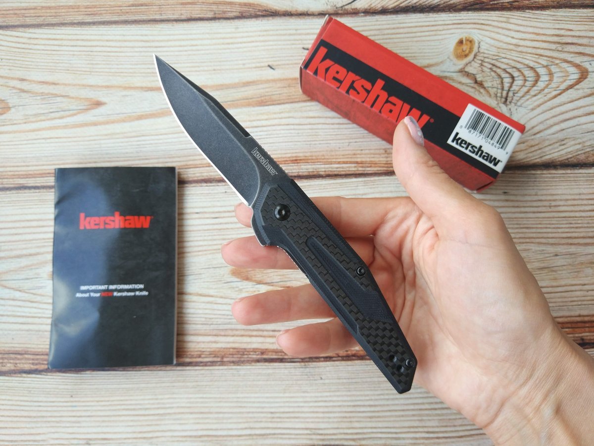 Вес этого малыша всего около 54 грамм, а длинна в сложенном состоянии около 10 см, он поместится в любом кармане и уж тем более сумке и будет там совершенно не заметно пребывать вплоть до того момента как он вам понадобится. Смею заверить, что извлекать его из кармана придётся часто, по делу и без оного, потому что ощущения этот миниатюрный инструмент дарит самые позитивные. Здесь нет привычного бюджетным моделям компании Кершоу ассиста, вместо этого применены подшипники в металлической обойме. Данный нож – чистый городской EDC. В силу компактных размеров и малого веса им с лёгкостью могут пользоваться и дамы, а индустриальный дизайн, обыгранный вставками из карбона непременно найдёт ценителей в среде ножеманов всех возрастов.