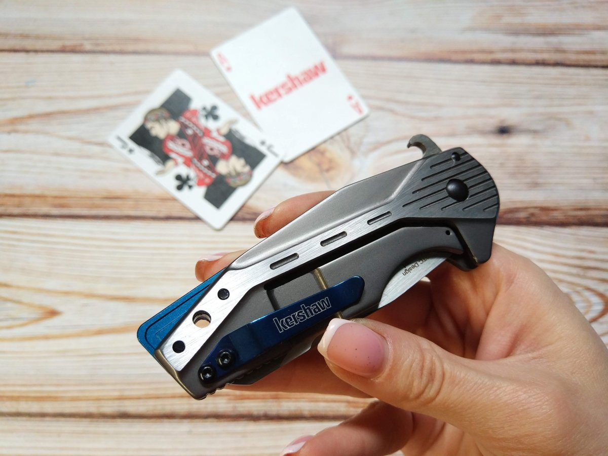 Клинок Kershaw Malt выполнен из стали 8Cr13MoV – широко применяемой Kershaw. Финиш клинка комбинированный – PVD покрытие и Satin. Нож легко открывается благодаря встроенной фирменной вспомогательной системе SpeedSafe, которая мгновенно приводится в действие при небольшом перемещении флиппера. В закрытом положении этот же плавник может служить открывалкой для бутылок (имеется специальный вырез для этой манипуляции).