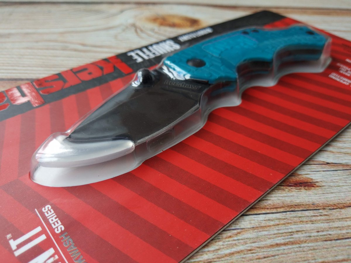 Форма клинка Kershaw Shuffle – короткий листообразный клин. Клинок Shuffle достаточно широк, чтобы работать им "щепотью", достаточно толстый, чтобы упереться большим пальцем. Сталь на клинке Kershaw Shuffle - 8Cr13MoV, что уже традиционно для Kershaw. Выпуская множество моделей своих ножей компания, используют именно эту марку стали, по праву считая её хорошо сбалансированной по сочетанию своих эксплуатационных характеристик к цене. «Шафл» имея клинок из этой стали, хорошо точится, неплохо держит заточку и устойчив к коррозии. Финиш клинка black-oxide BlackWash™ finish.